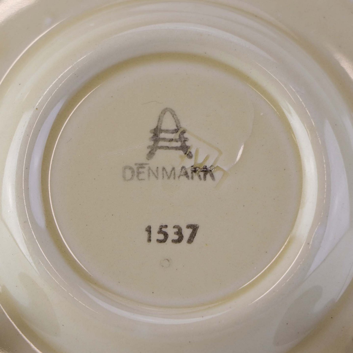 Rund kuvertasiet i fajance fra stellet Asserbo fremstillet i perioden 1933-1965. Nr. 1537Formgiver Nils Thorsson