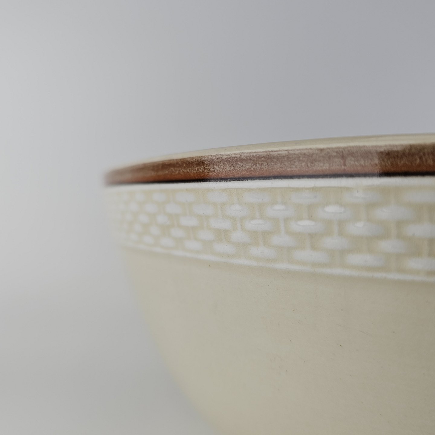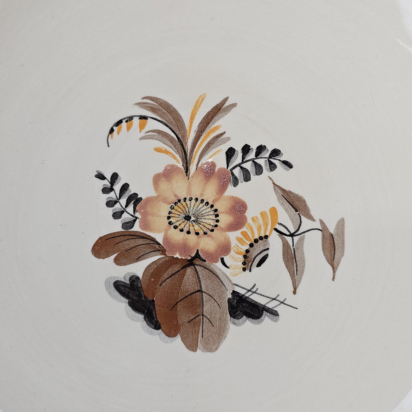 Knud er cremefarvet fajance dekoreret med flettet kant og brune og orange blomster. Stellet blev produceret i år 1934-1963.