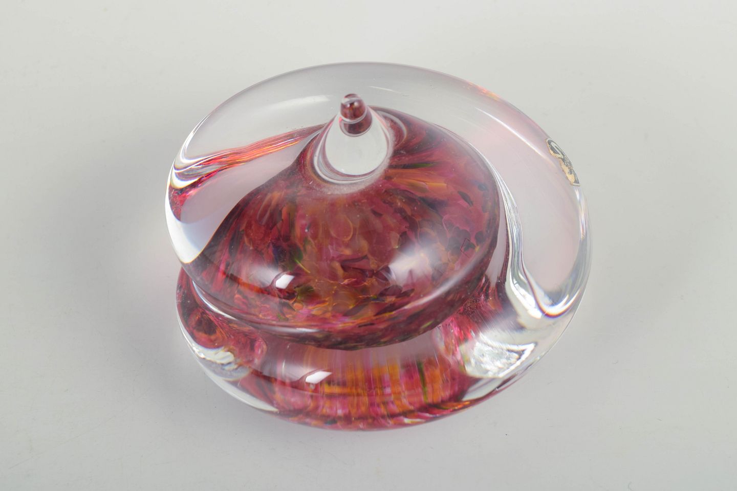 FM Konstglas was a Swedish glassworks located in Ronneby. Active during the second half of the 20th century, the workshop produced decorative art glass objects in clear and coloured glass. The production is characterised by organic and abstract forms, colour inclusions, and controlled internal effects, executed with a strong emphasis on craftsmanship.