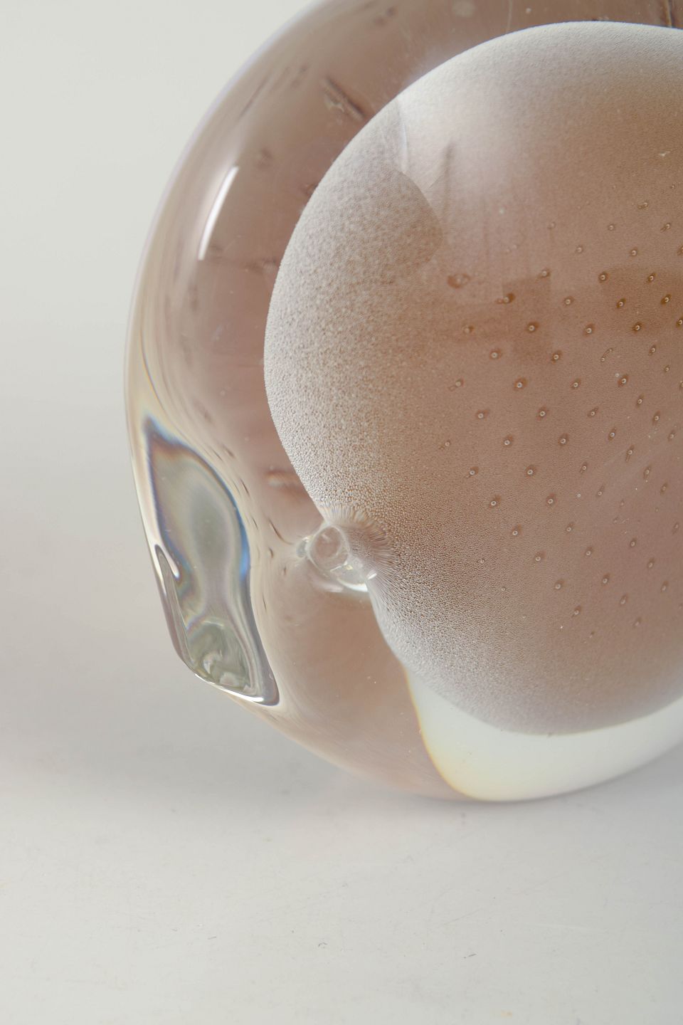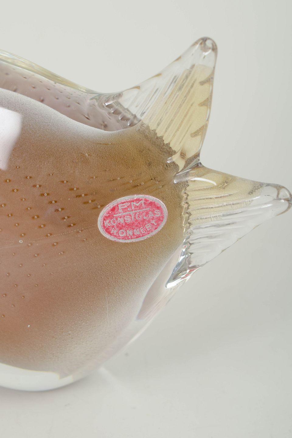 Fm Konstglas, fish sculpture.Organically shaped fish in solid art glass with soft contours in pink and white tones. Executed with controlled air bubbles and a frosted section. Retaining the original FM Konstglas, Ronneby sticker.