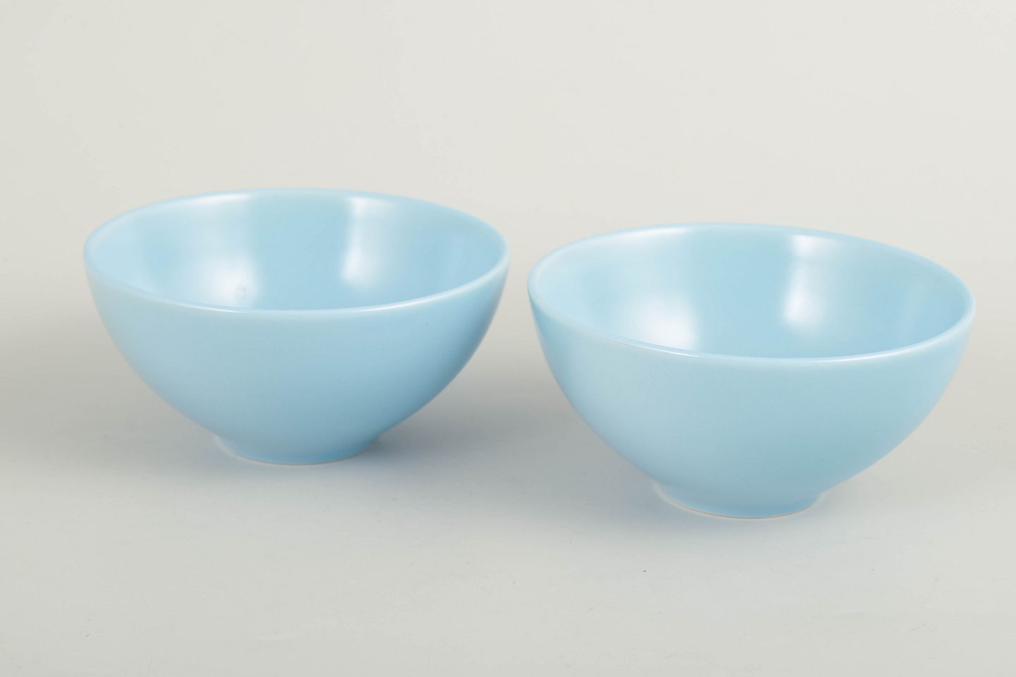 Höganäs Keramik, set of two bowls in turquoise glaze.Round bowls in stoneware with an even turquoise glaze and gently conical form.