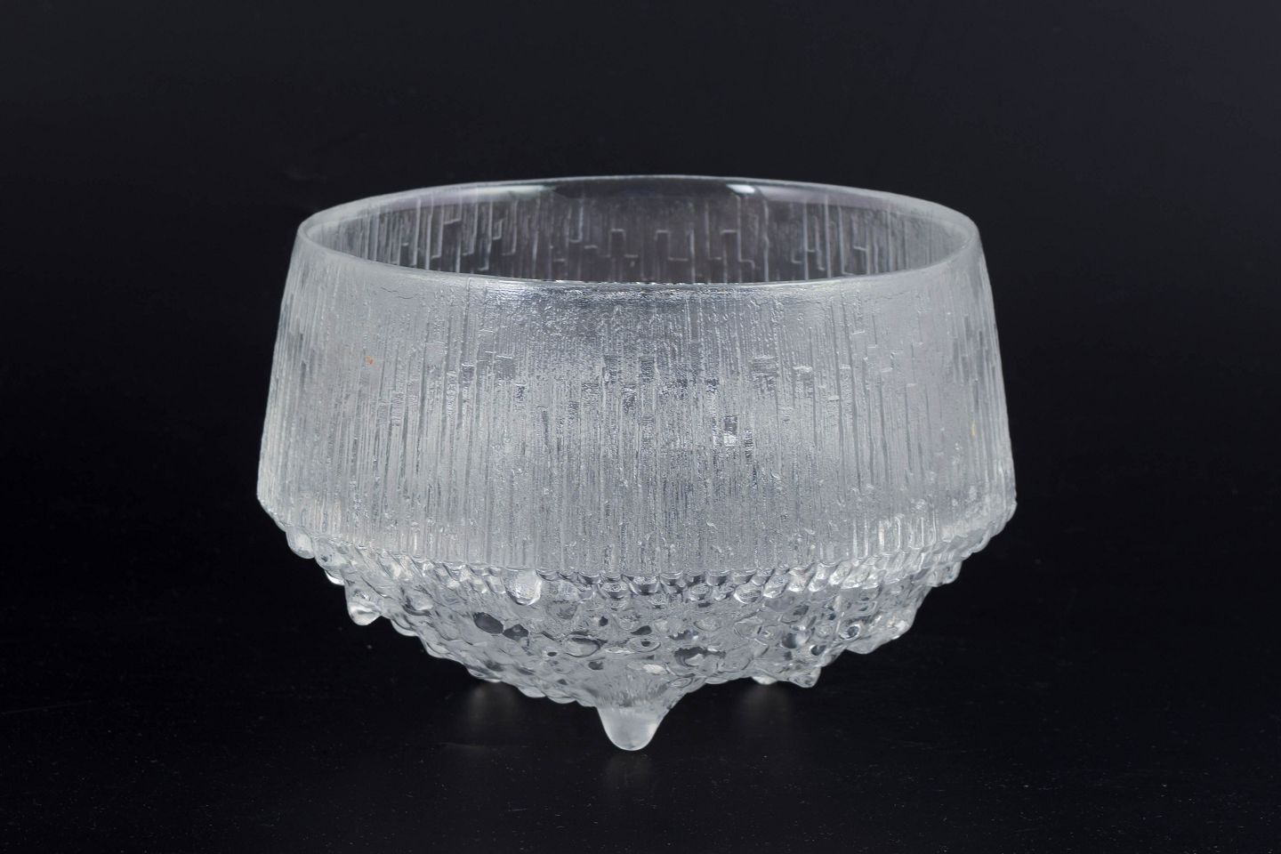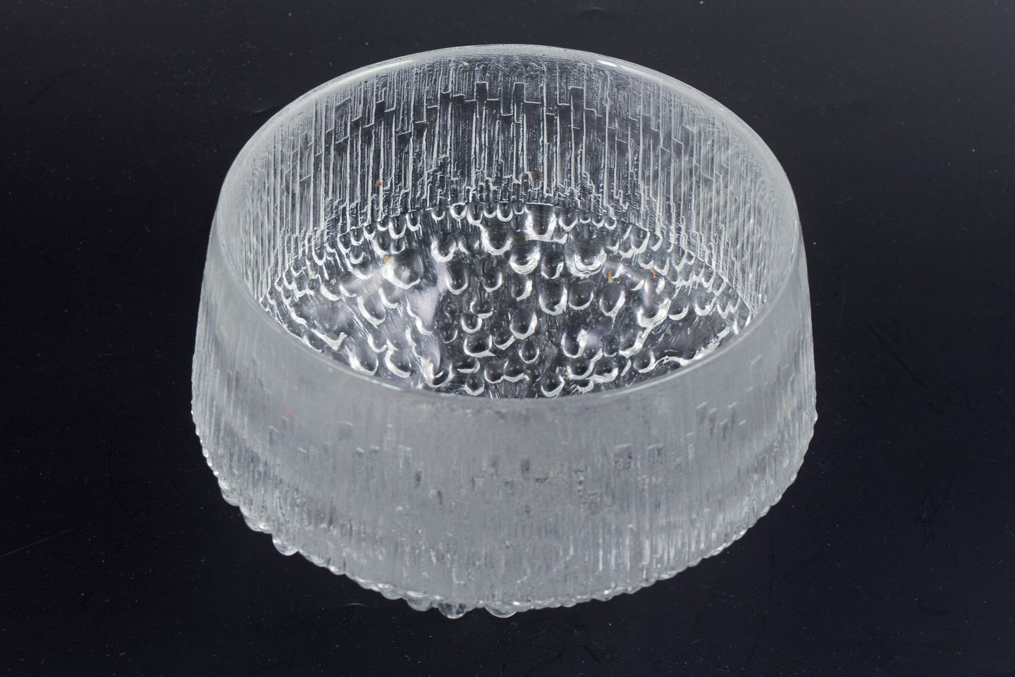 Tapio Wirkkala for Iittala, bowl.Pressed clear glass bowl from the Ultima Thule series, defined by its distinctive textured surface inspired by melting ice and Arctic landscapes. Unmarked.
