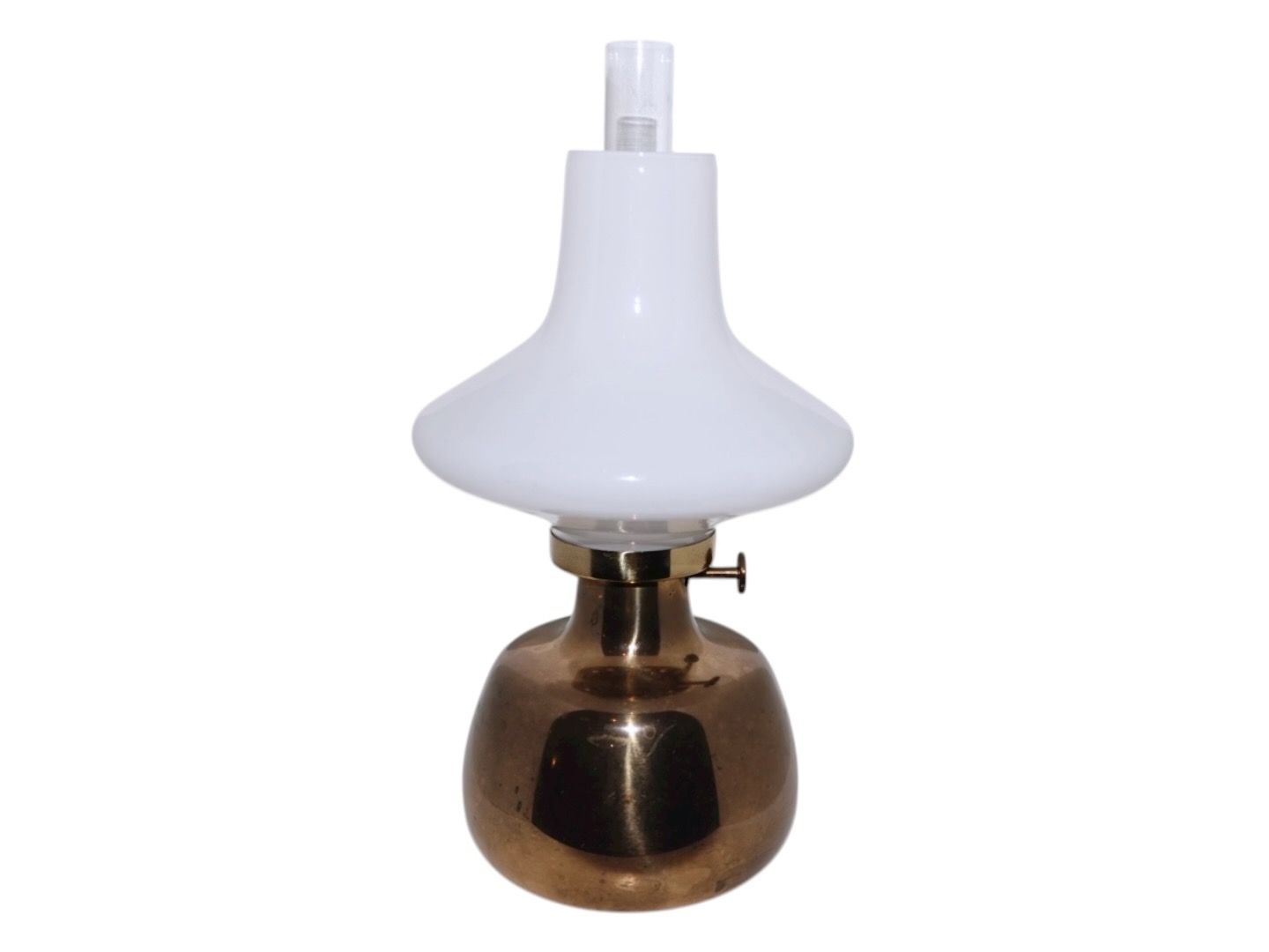 Henning Koppel.Petronella oil lamp with white opal glass shade from Holmegaard.