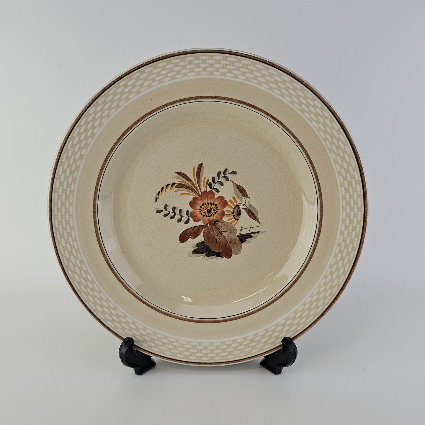 Knud er cremefarvet fajance dekoreret med flettet kant og brune og orange blomster. Stellet blev produceret i år 1934-1963.