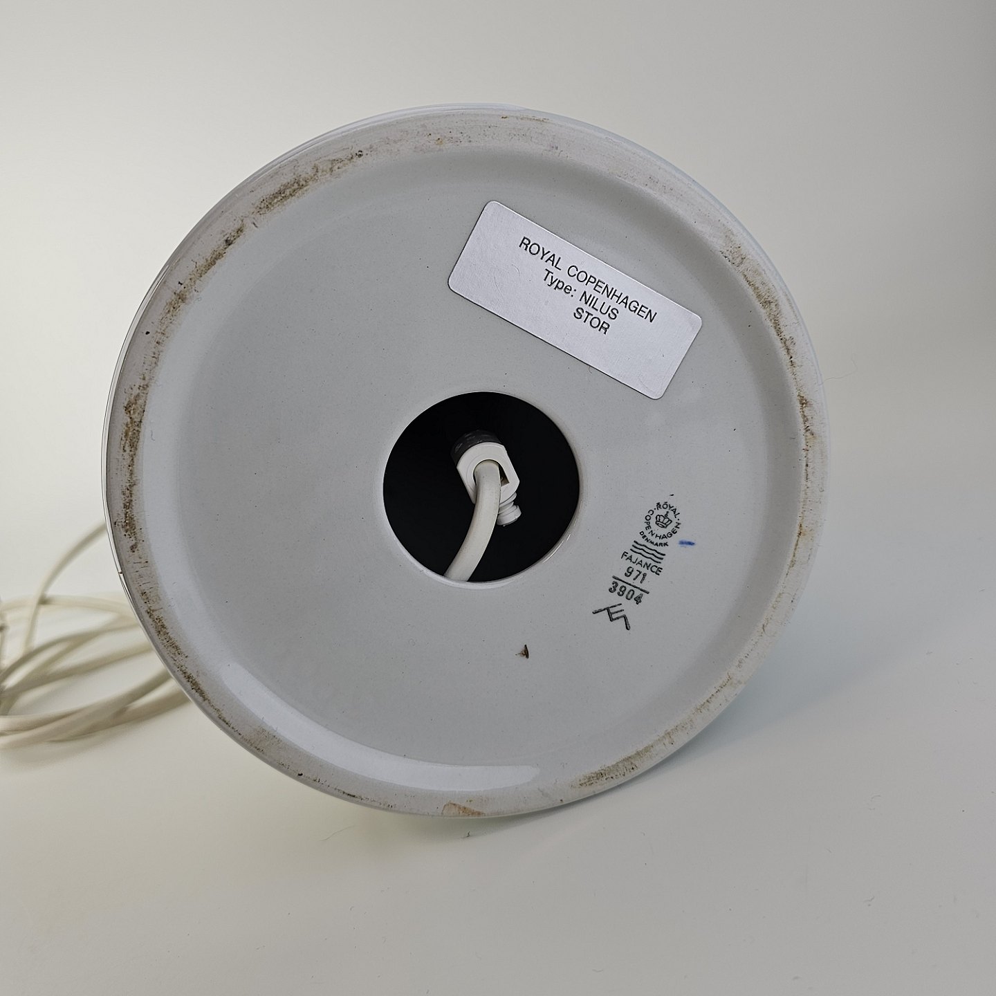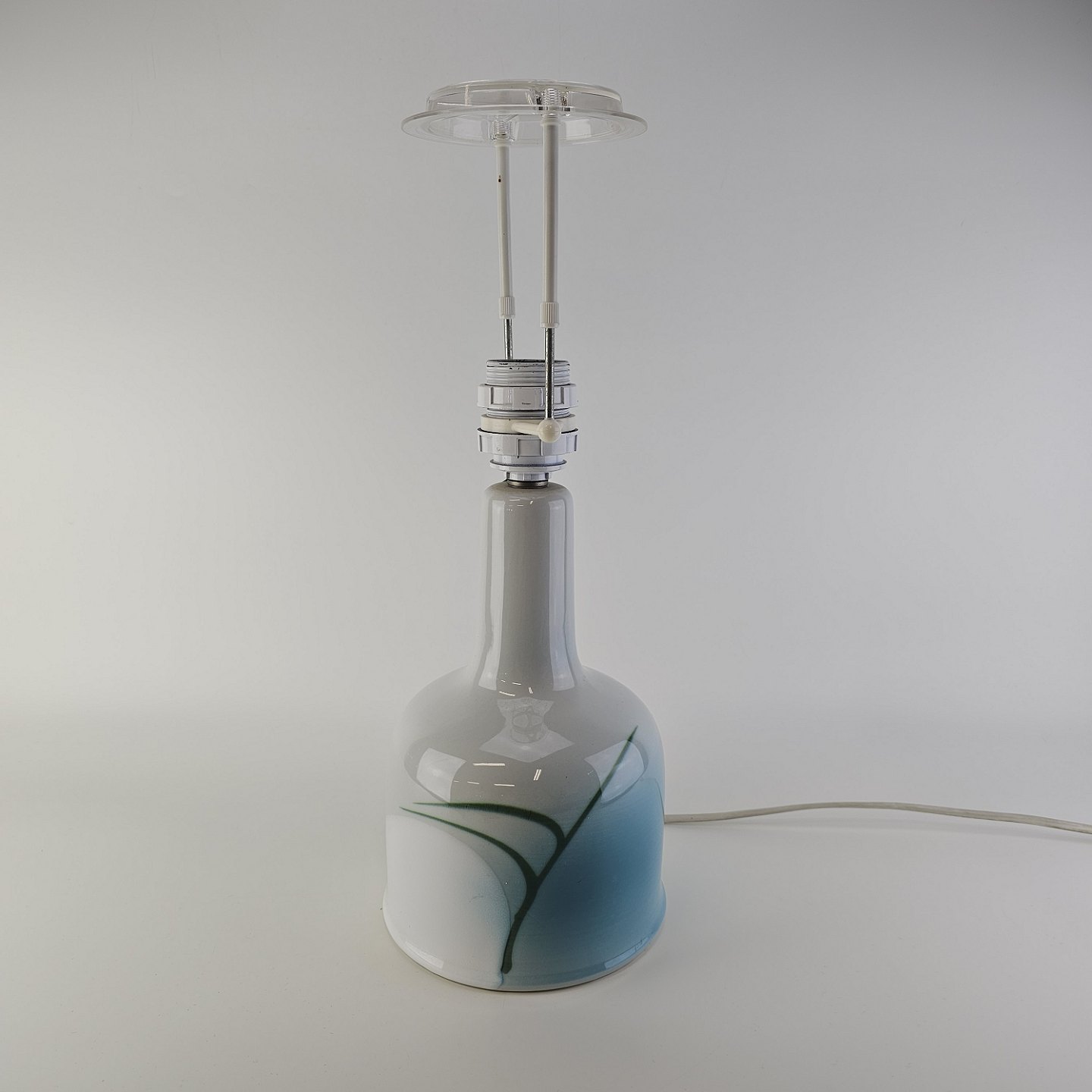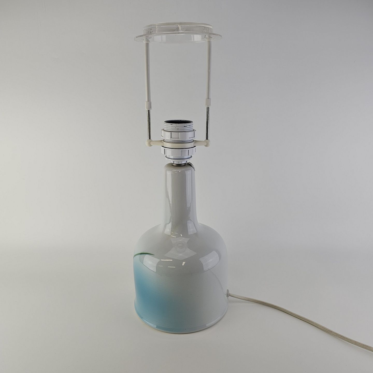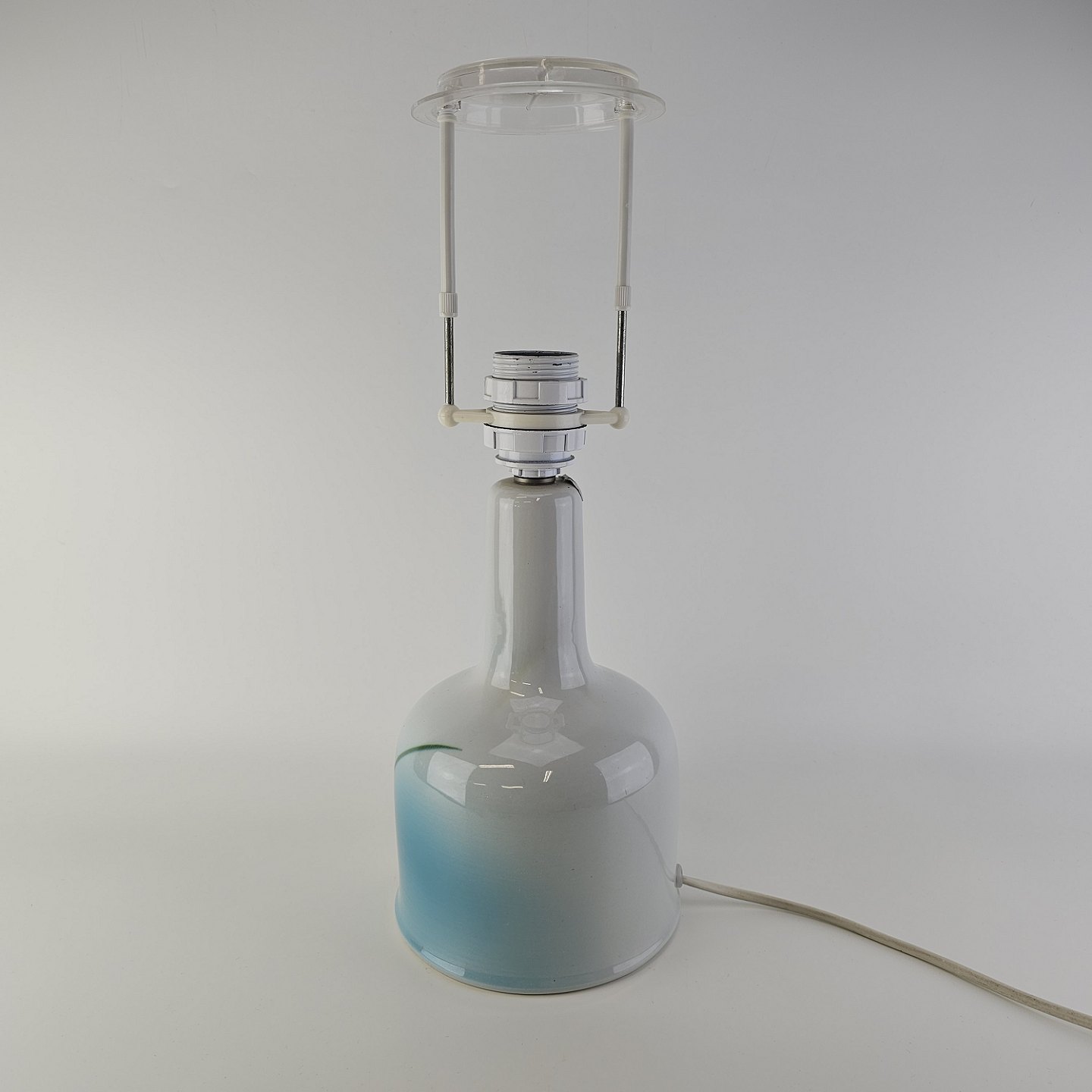 Lampefod i hvid fajance med dekoration af blå graduering og sorte streger, model NilusNr. 971/3904