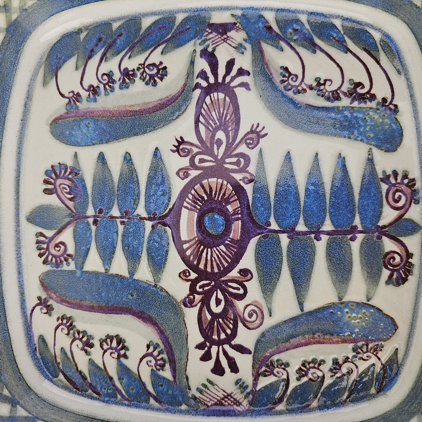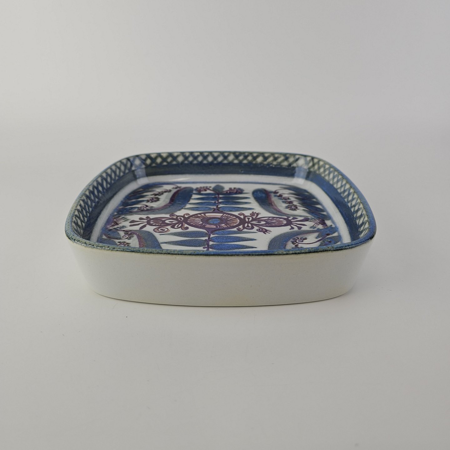 Firkantet fad fra serien Tenera i fajance med abstrakt dekoration i blå nuancerNr. 412/2883