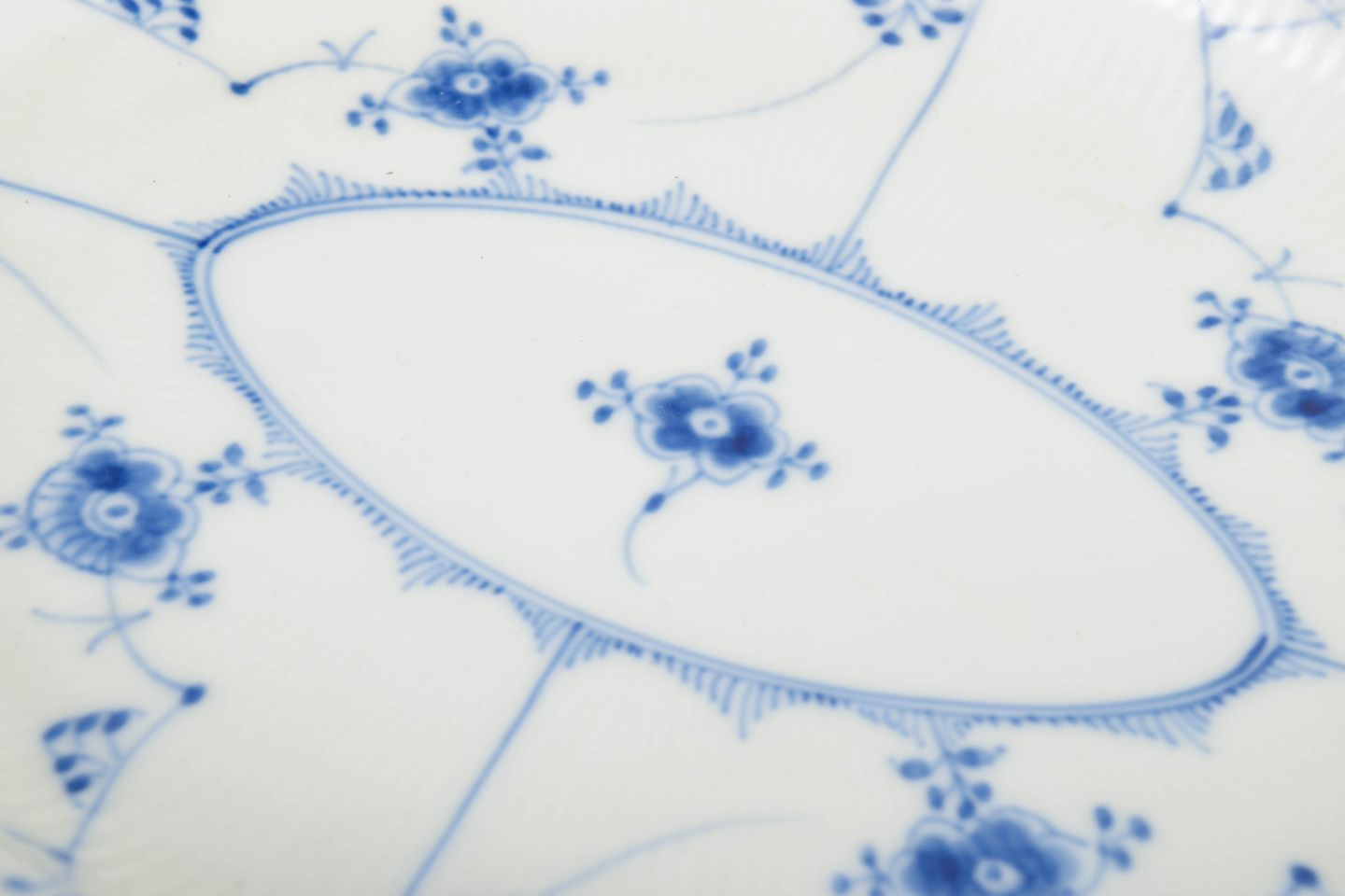 Royal Copenhagen was founded in 1775 in Copenhagen under royal charter. The factory is internationally recognised for its hand-painted porcelain and high artistic standards. Blue Fluted Half Lace is a variation of the classic Blue Fluted service, combining fluted surfaces with a decorative lace border executed with exceptional craftsmanship.