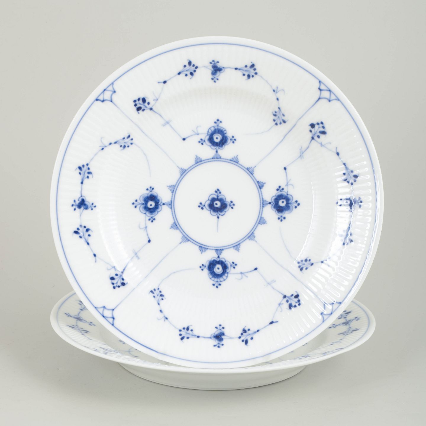Royal Copenhagen Blue Fluted Plain, set of two dinner plates.Set of two hand-painted porcelain dinner plates from the Blue Fluted Plain service with classic underglaze decoration in cobalt blue. Model 1/175. First factory quality. Each plate measures 26 cm in diameter.