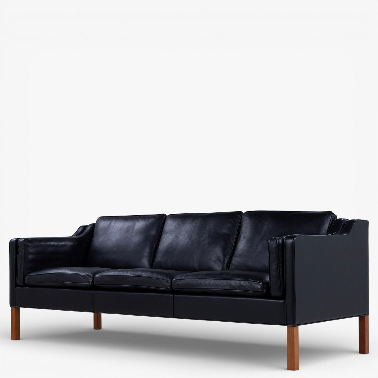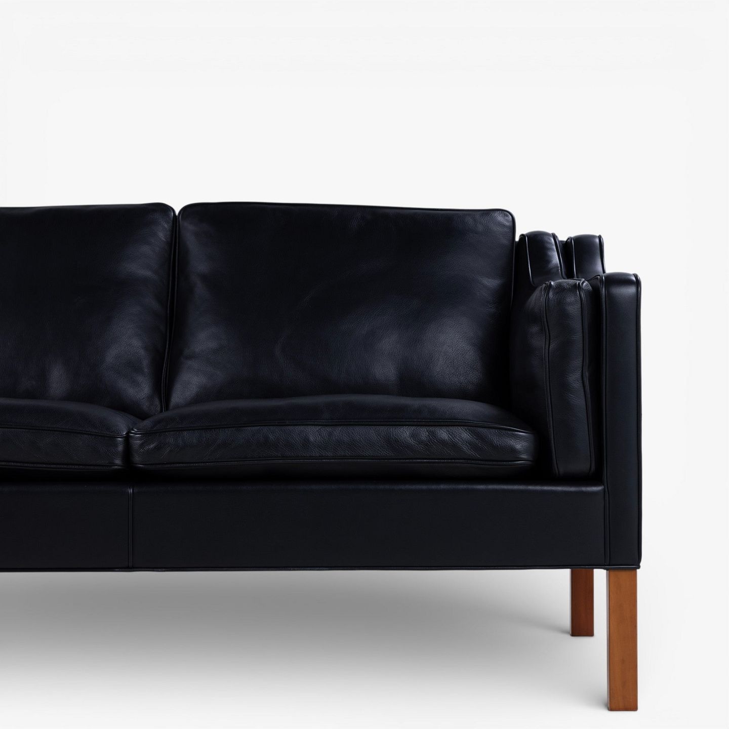 BM 2213 - 3 seater sofa in black semi-aniline leather. Manufacturer's label.