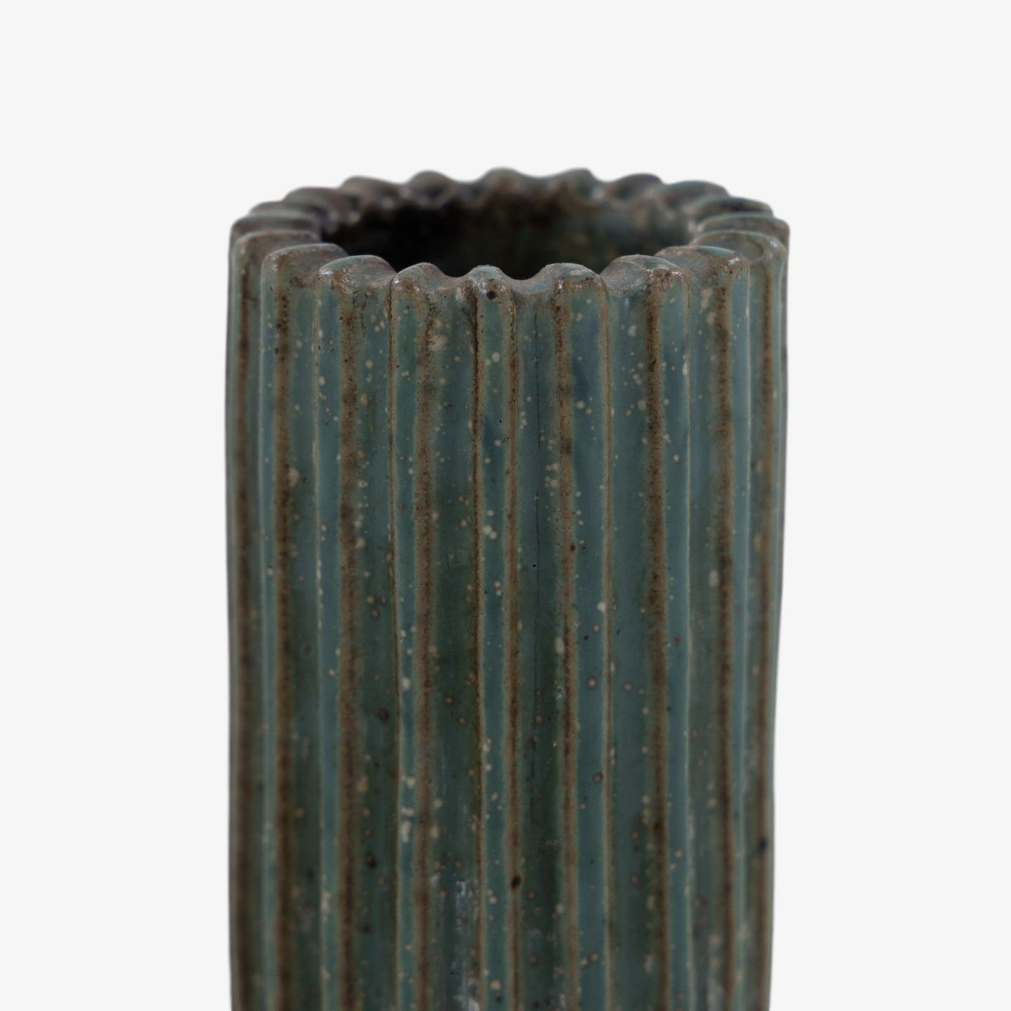 Model AB 133 - Candlestick in fluted stoneware with green-blue glaze. Signed.
