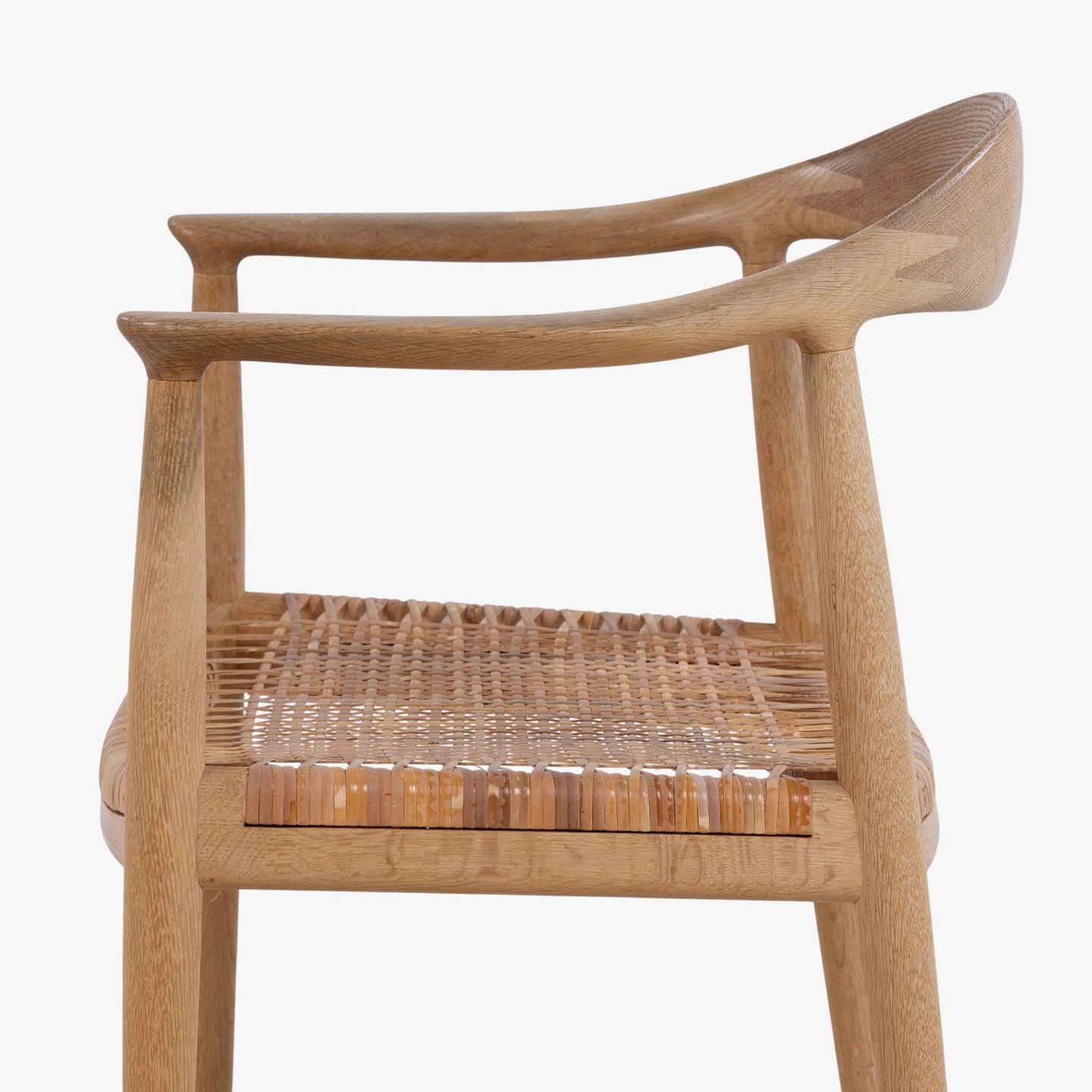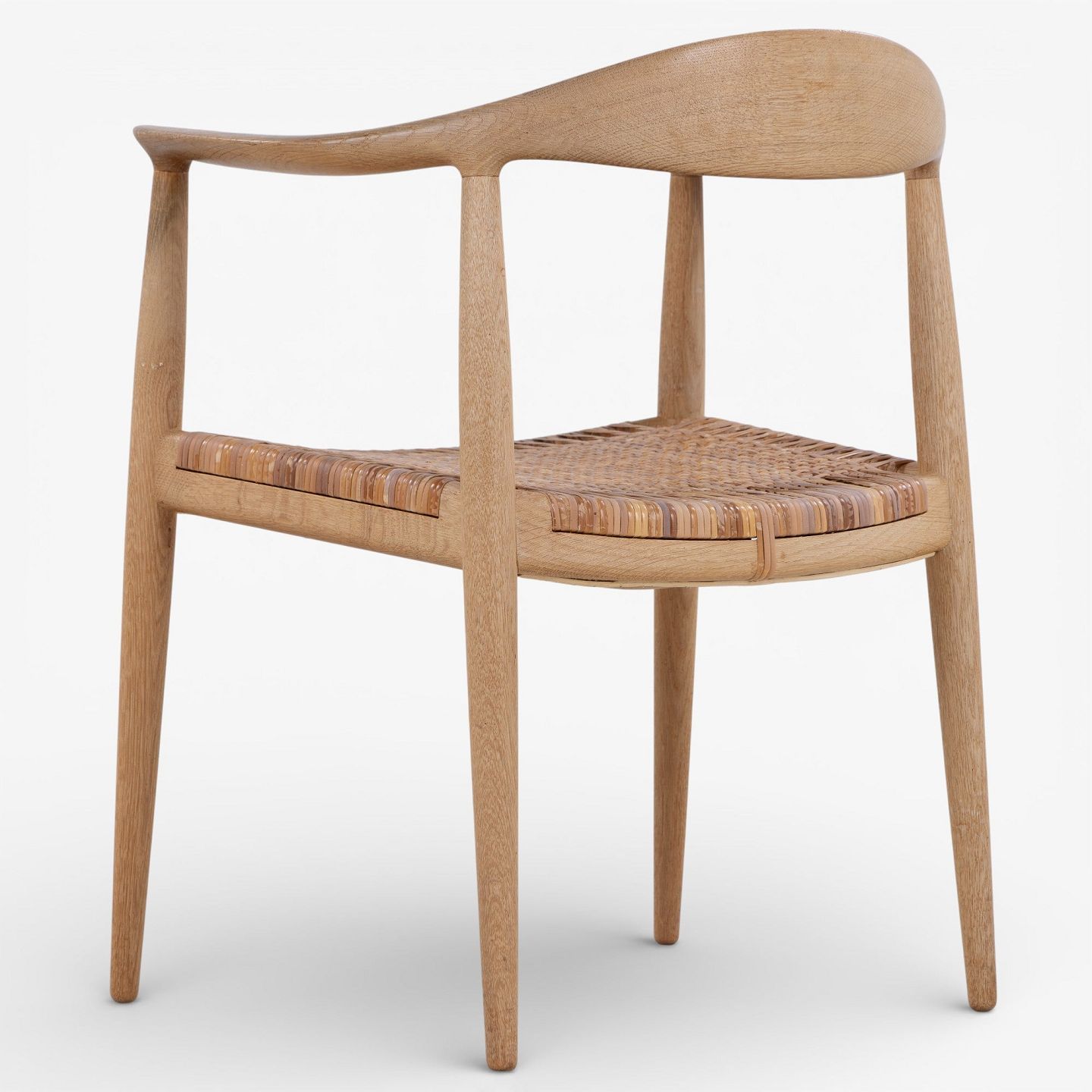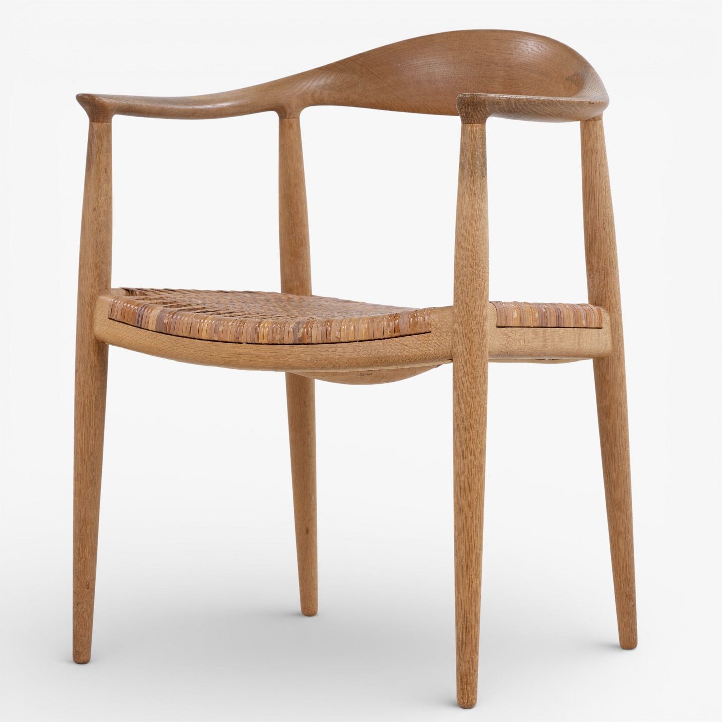 JH 501 - 'The Chair' dining chair in patinated oak with wicker seat. Branded by manufacturer.