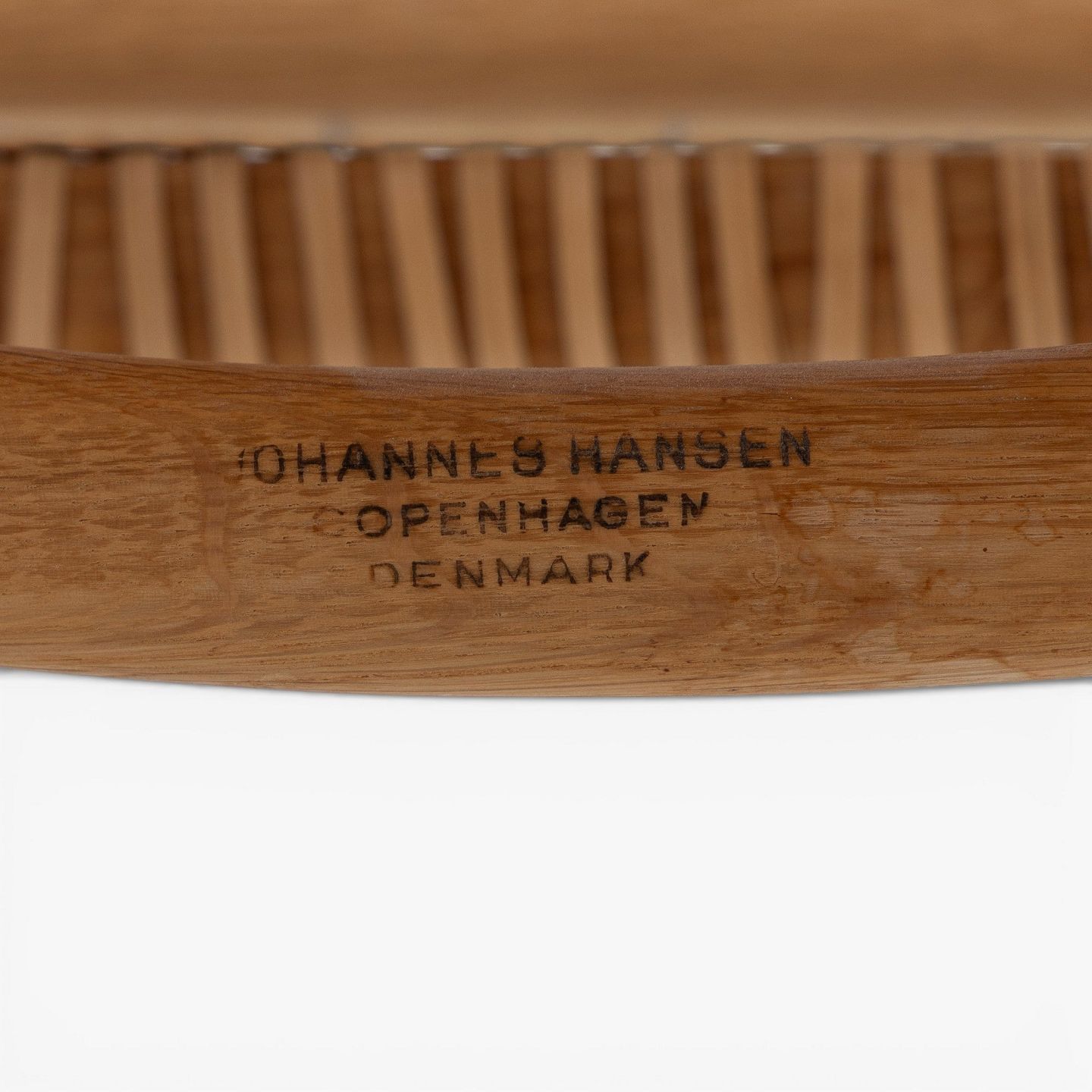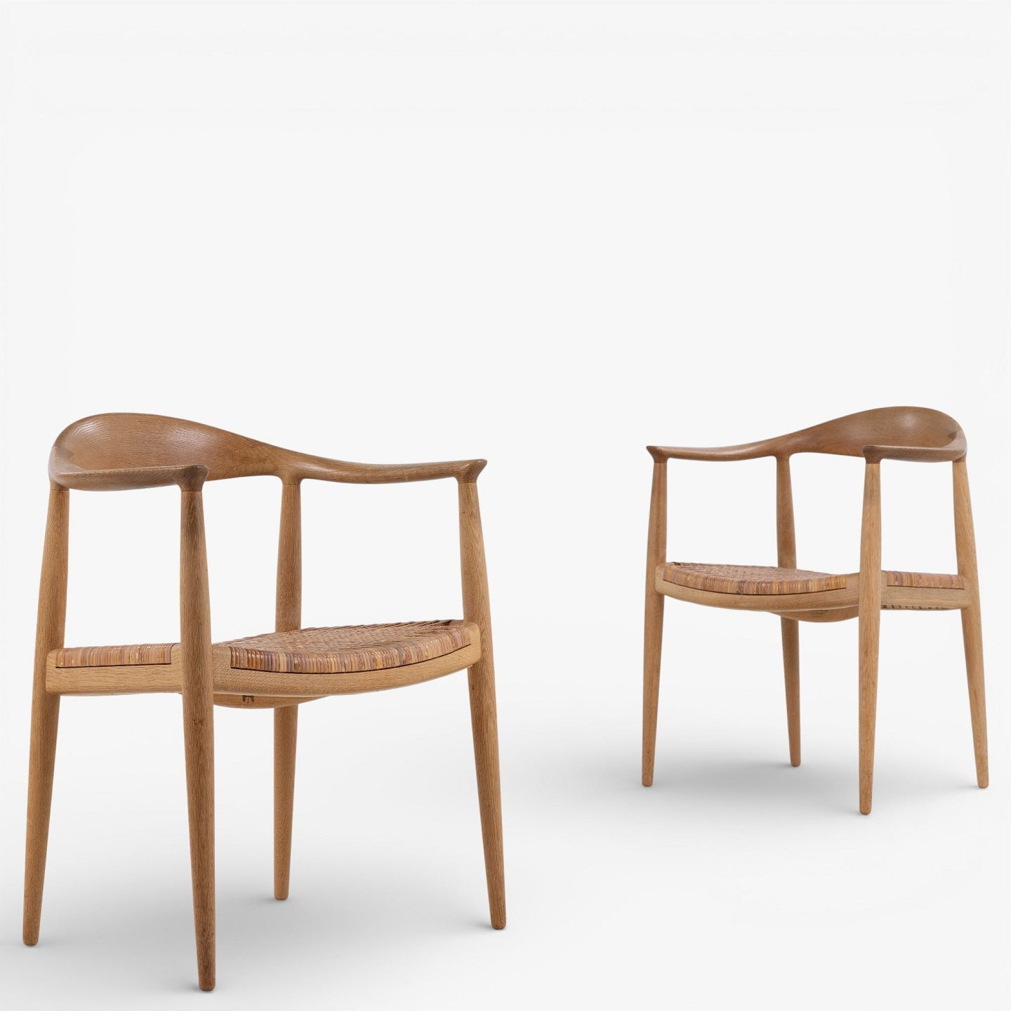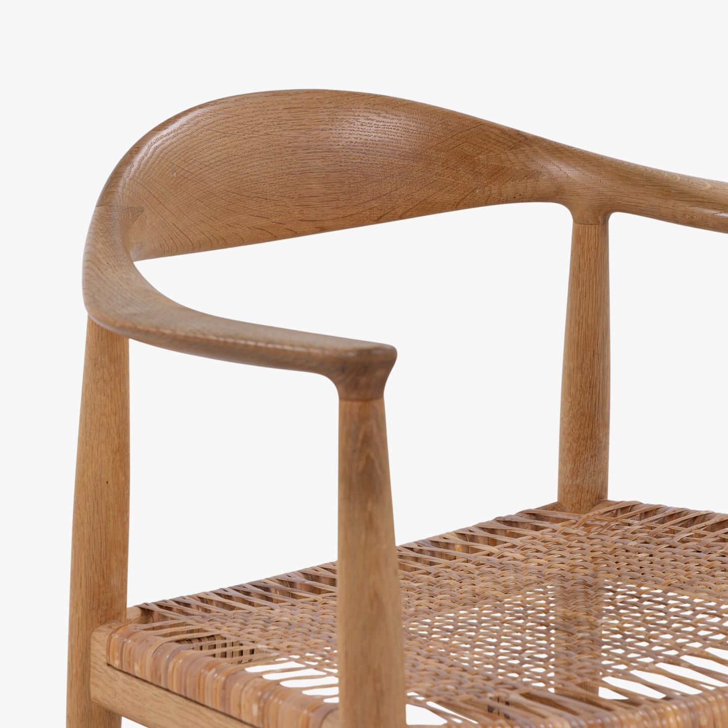 JH 501 - 'The Chair' dining chair in patinated oak with wicker seat. Branded by manufacturer.