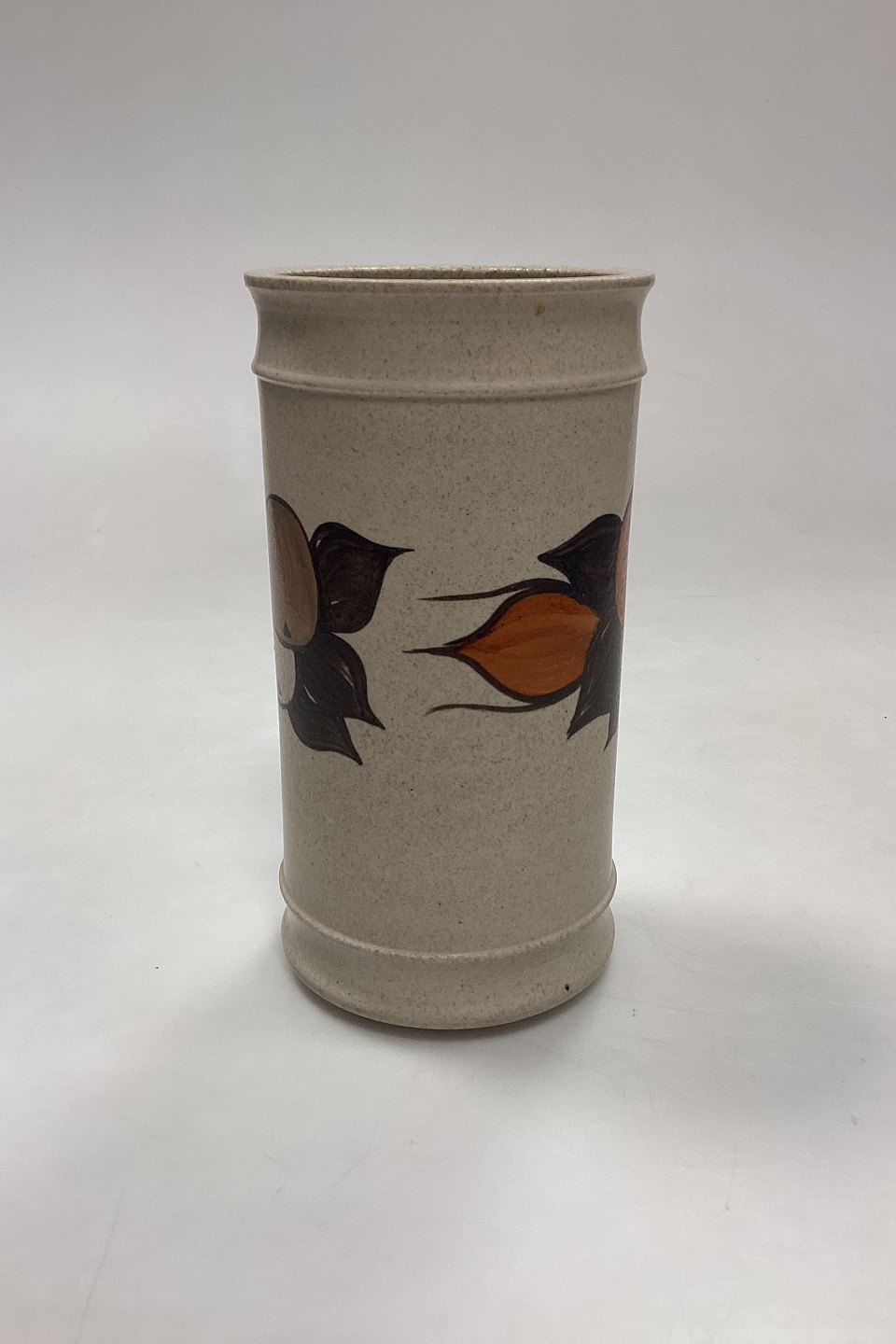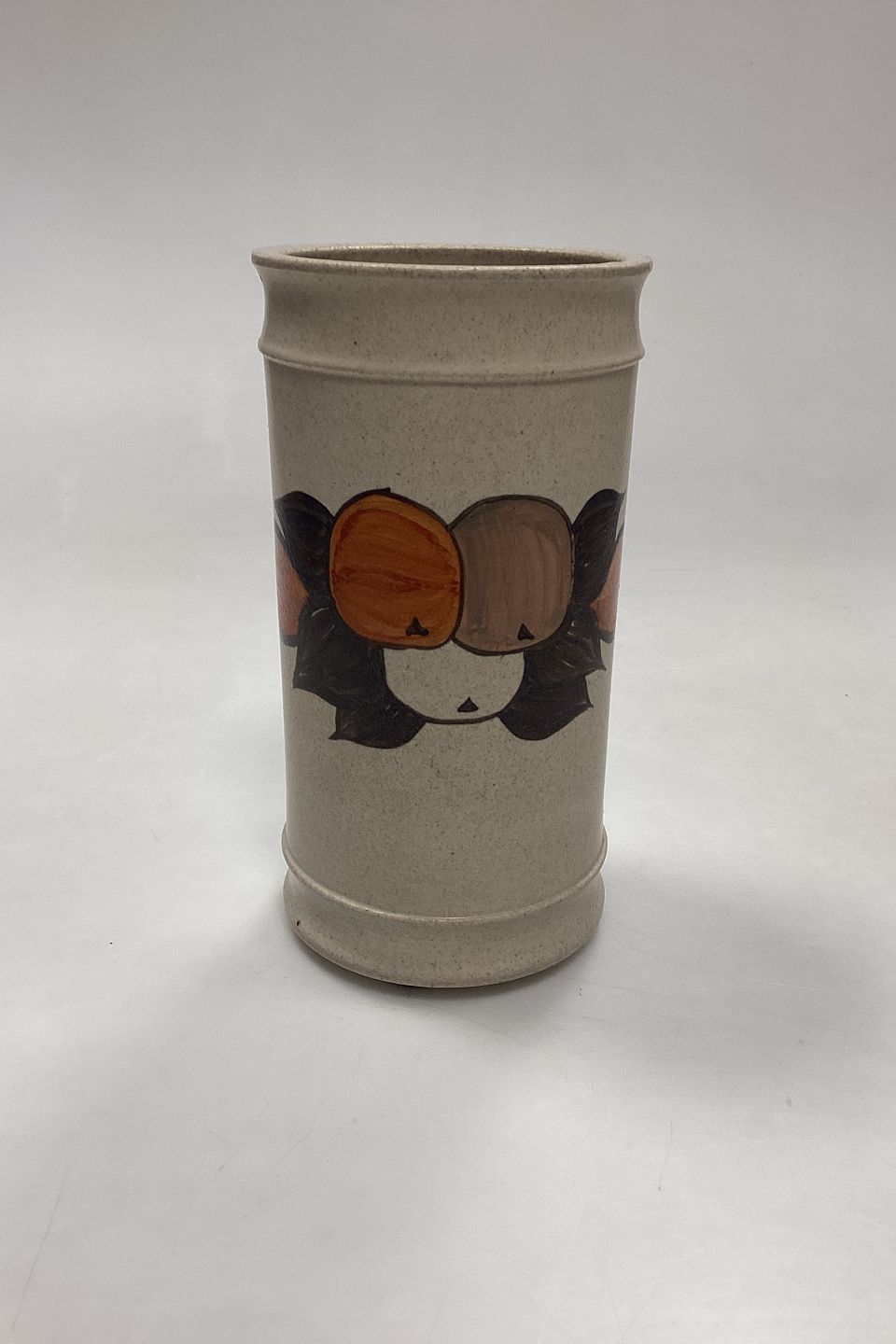 Kähler Ceramic Vase with Apples No. 811-18. Motif in orange and brown on a background of off-white stoneware.Measures 18.5 cm / 7.28 in.