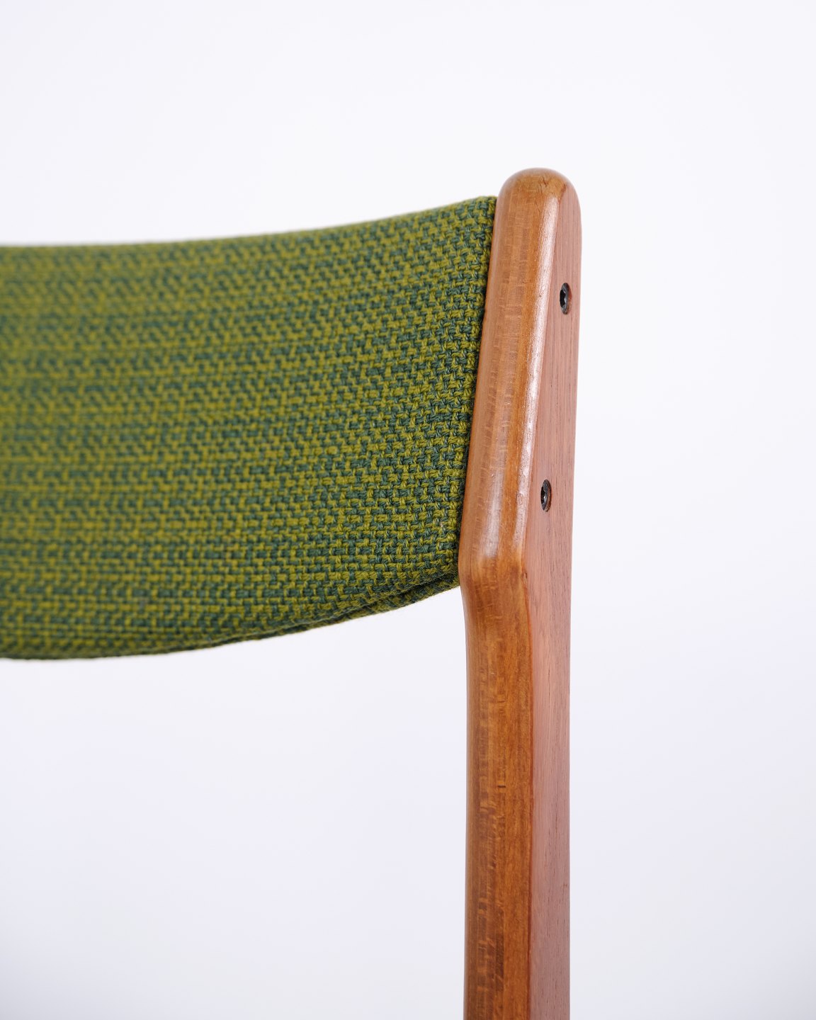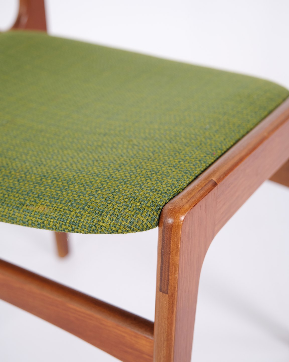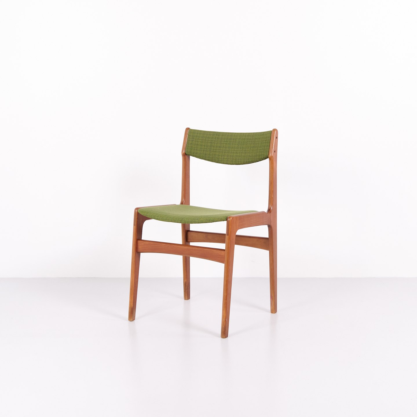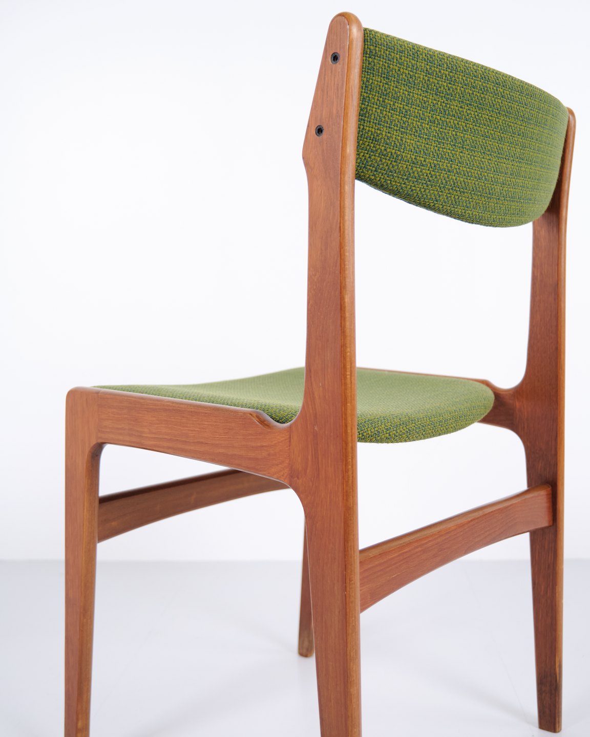 Erik Buch dining chair from the 1960s in teak and green fabric. Classic Danish design.— Origin: Denmark