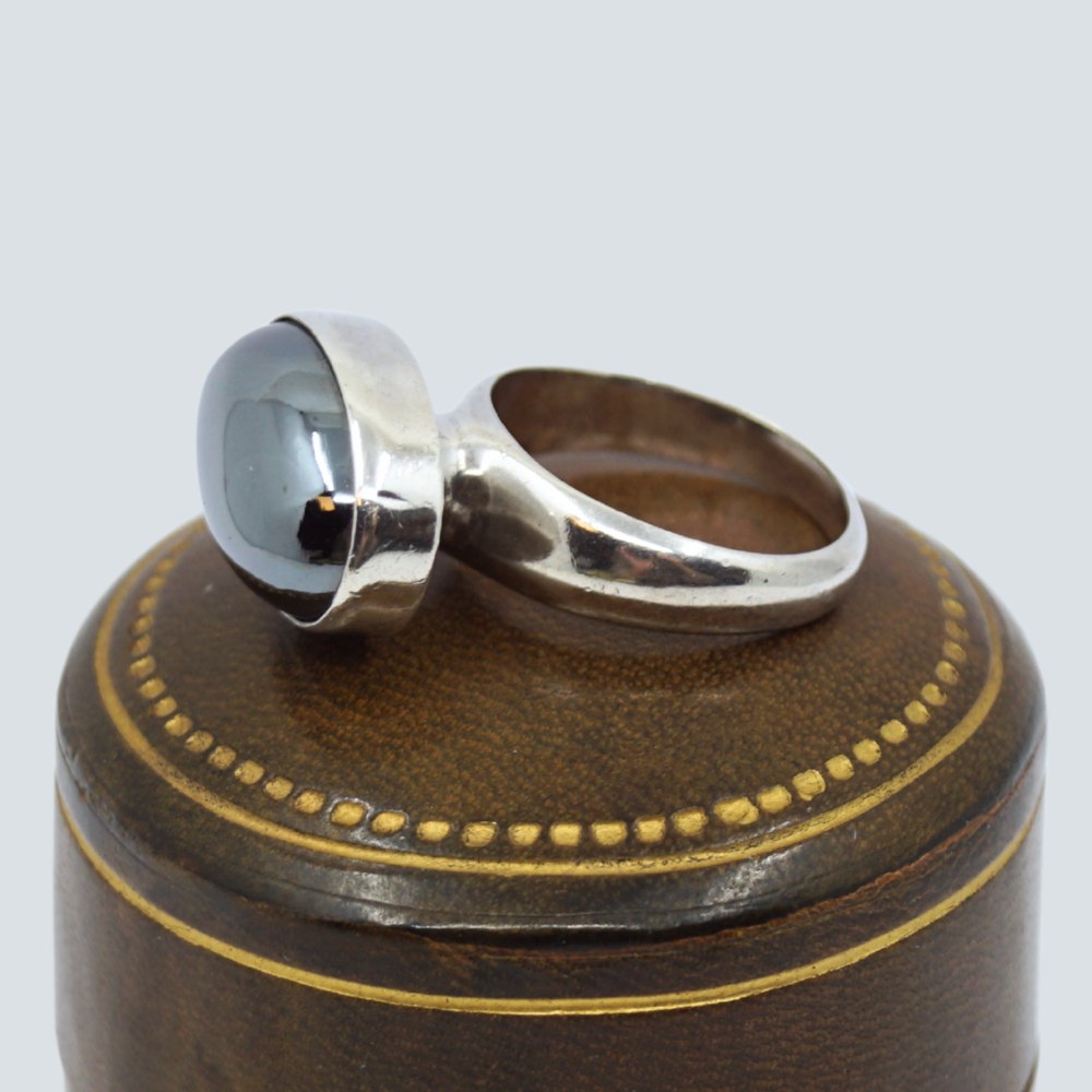 Nanna Ditzel for Georg Jensen; A ring made of sterling silver set with a hematite #123B. Ring size 51.Stamped "Georg Jensen 925 S Denmark 123B".