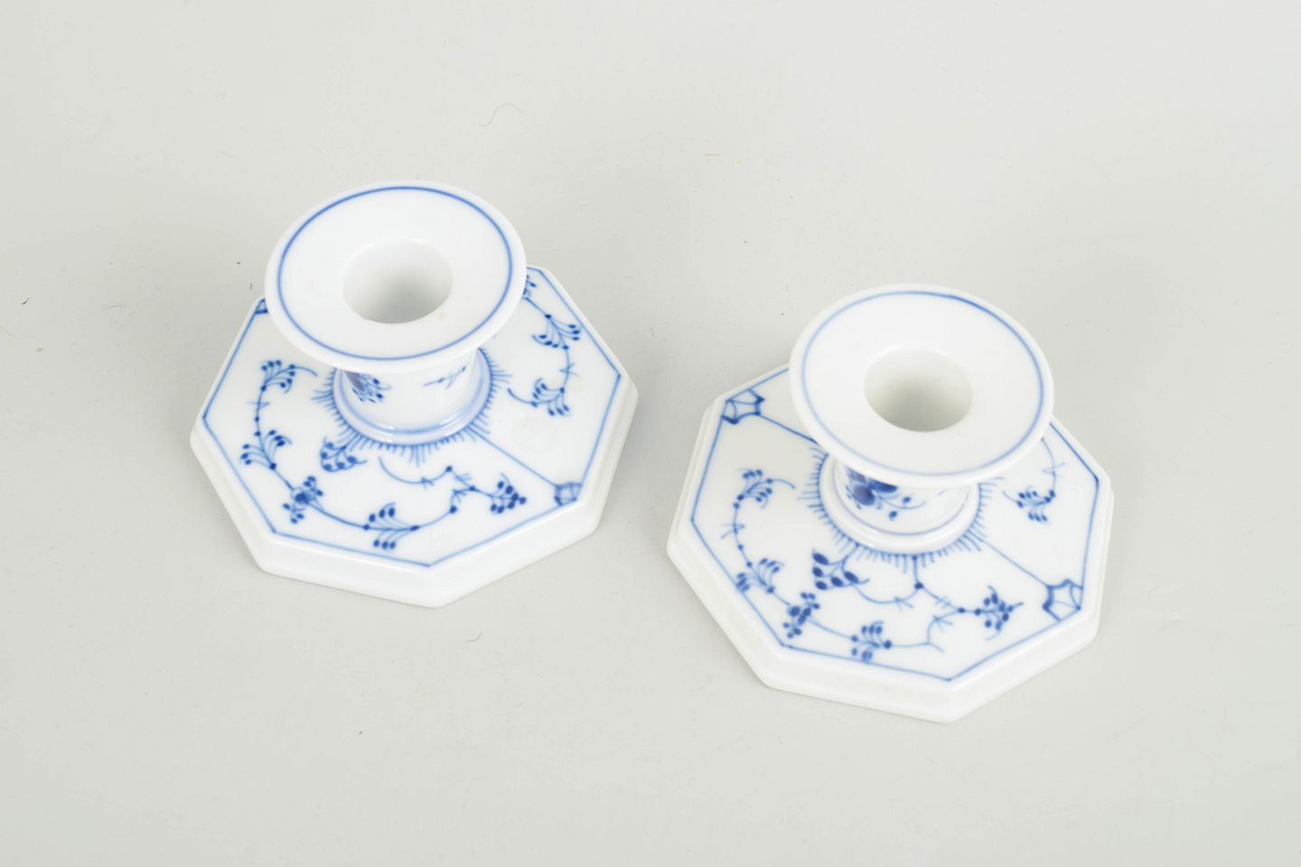 Royal Copenhagen Blue Fluted Plain, a pair of candlesticks.A pair of candlesticks in hand-painted porcelain from Blue Fluted Plain with classic underglaze decoration in cobalt blue.