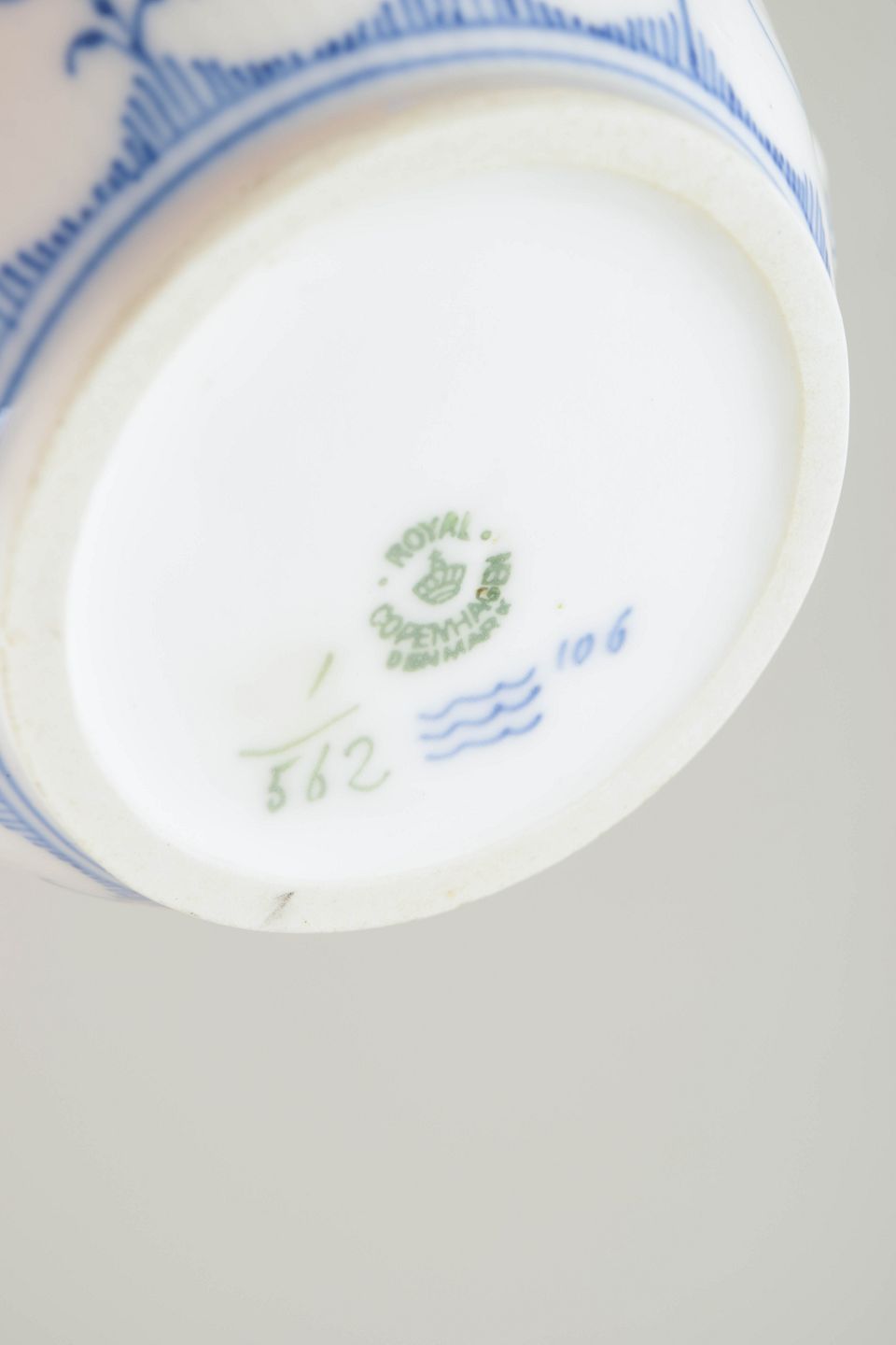 Royal Copenhagen was founded in 1775 in Copenhagen under royal patronage. The factory is internationally renowned for its hand-painted porcelain and high artistic standards. Blue Fluted Half Lace is a variation of the classic Blue Fluted service and combines fluted surfaces with a decorative lace border executed with great craftsmanship.