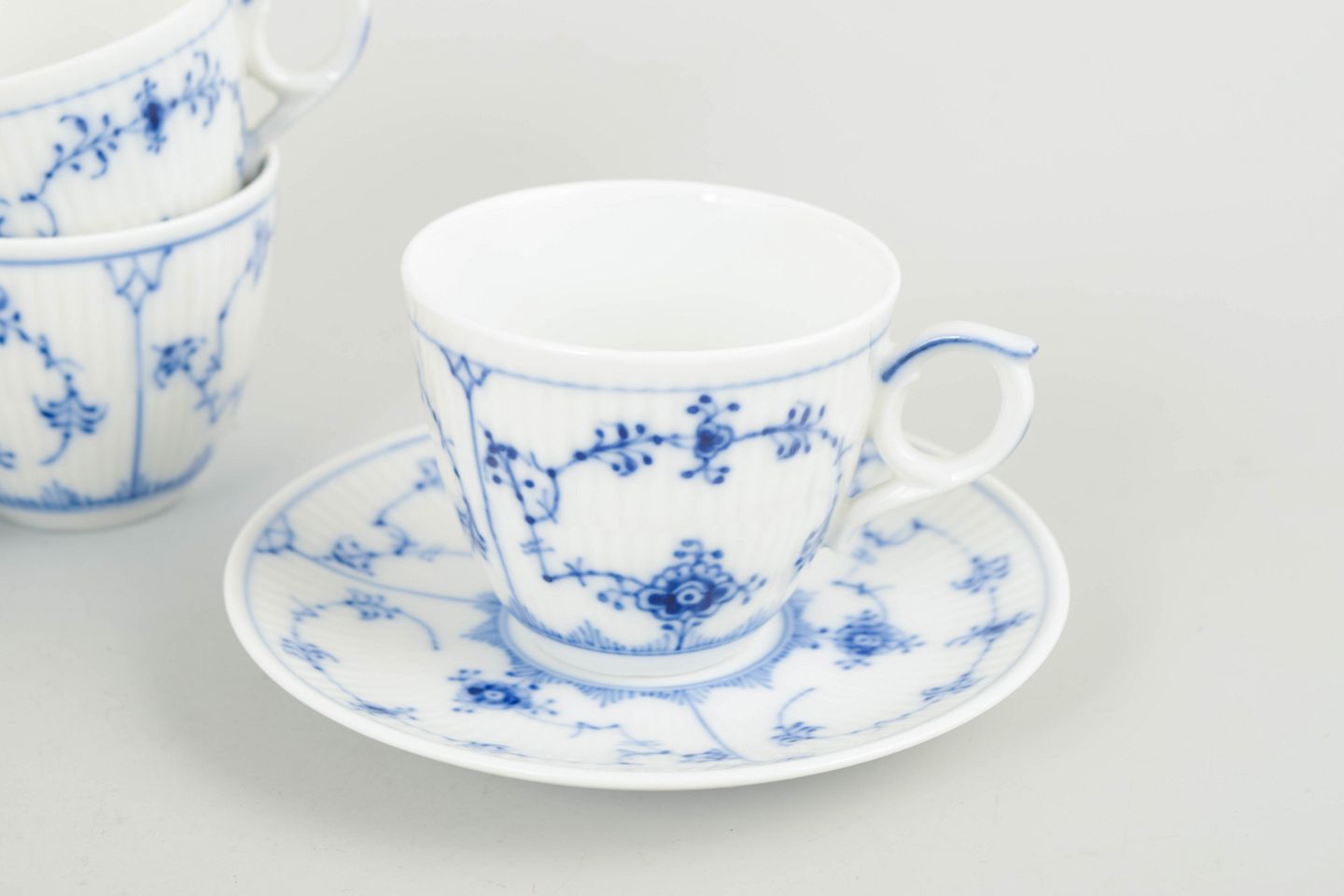 Set of four demitasse cups with matching saucers in hand-painted porcelain from Blue Fluted Plain with classic underglaze decoration in cobalt blue.