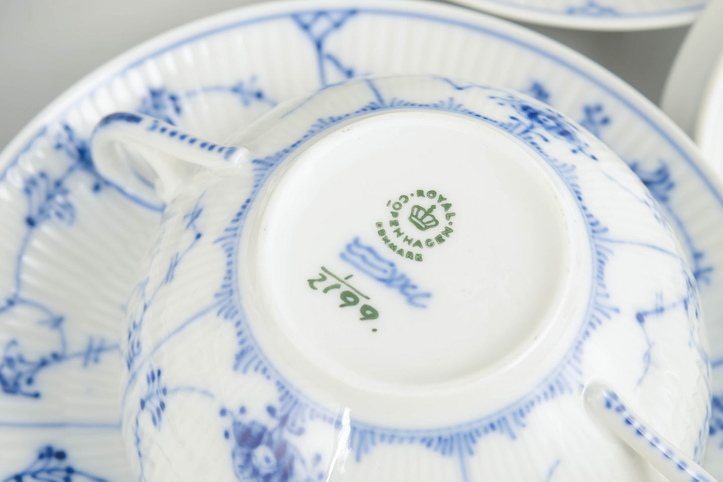 Royal Copenhagen was founded in 1775 in Copenhagen under royal patronage. The factory is internationally renowned for its hand-painted porcelain and high artistic standards. Blue Fluted Plain is the factory’s oldest service, introduced in 1775 and still in production today, known for its classic cobalt blue decoration and fluted form.