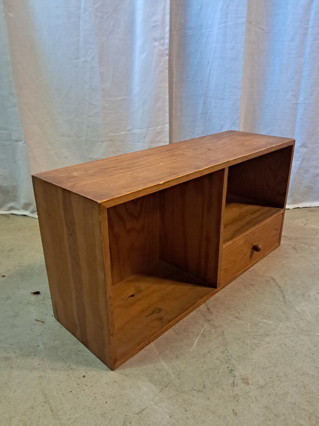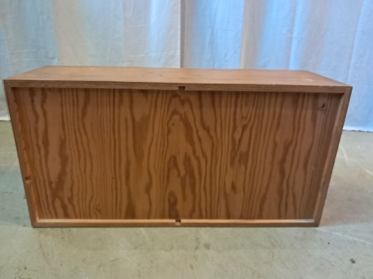 Bogkasse i krydsfiner, fra 1980erne.Den har en del brugsspor.
