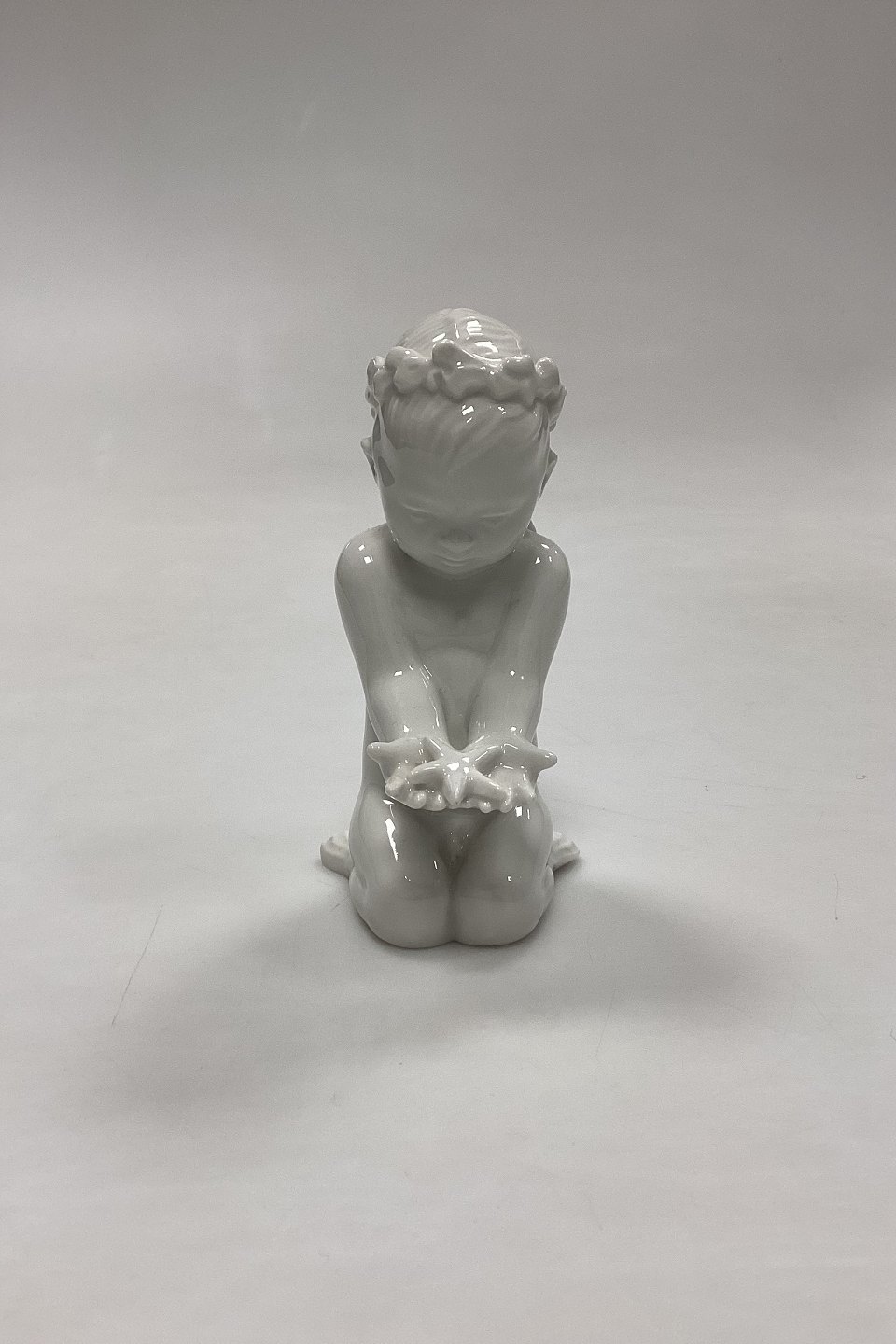 Bing and Grøndahl Blanc de Chine Figurine of Sea Boy with Starfish No. 2265. Designed by Ebbe Sadolin and Svend Jespersen.Measures 11 cm / 4.33 in.