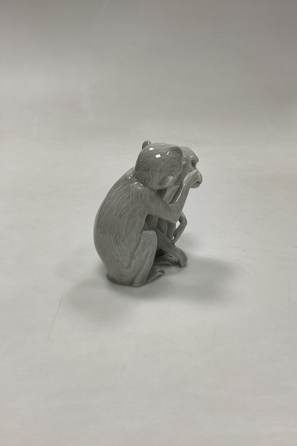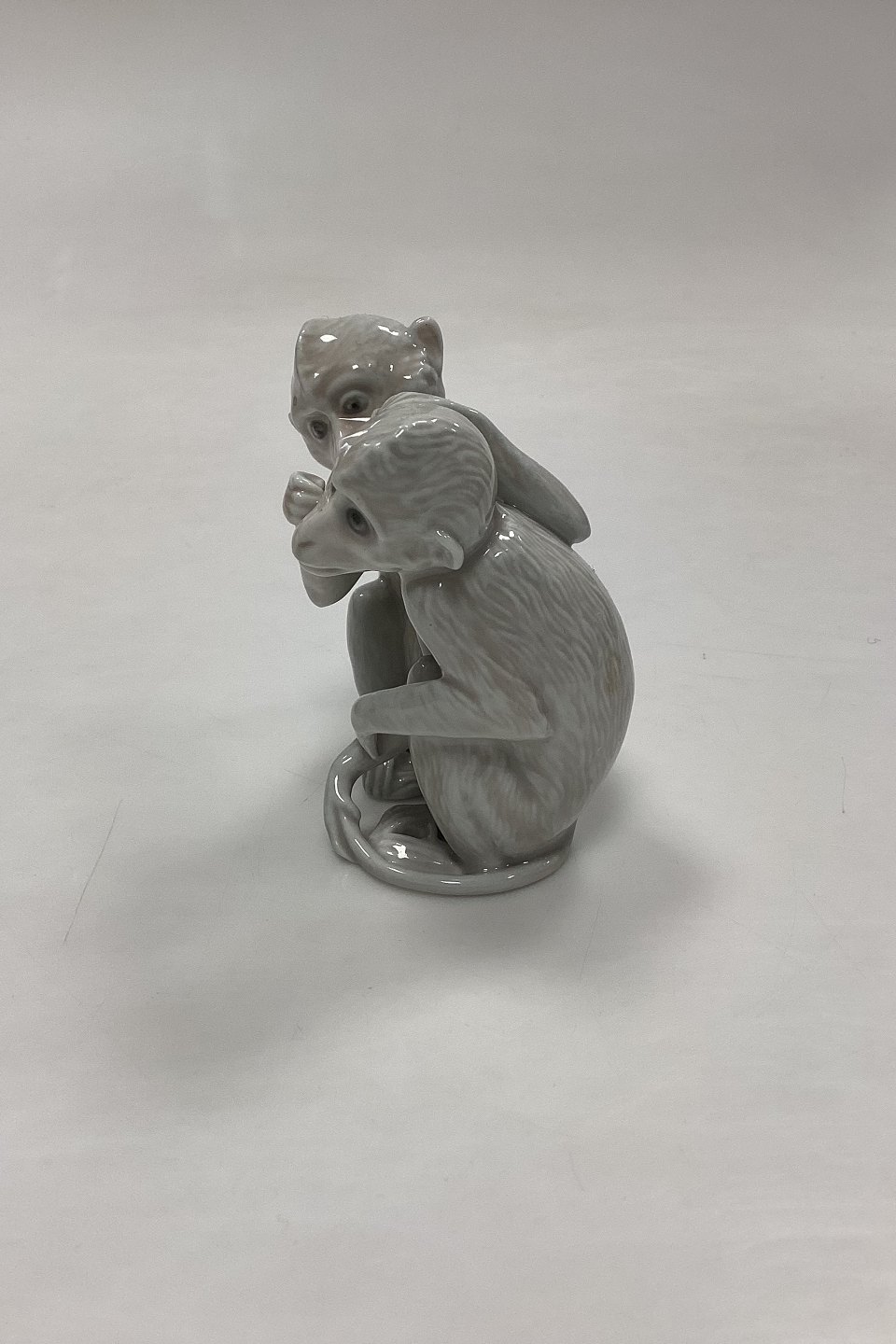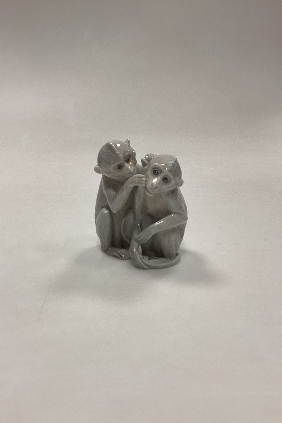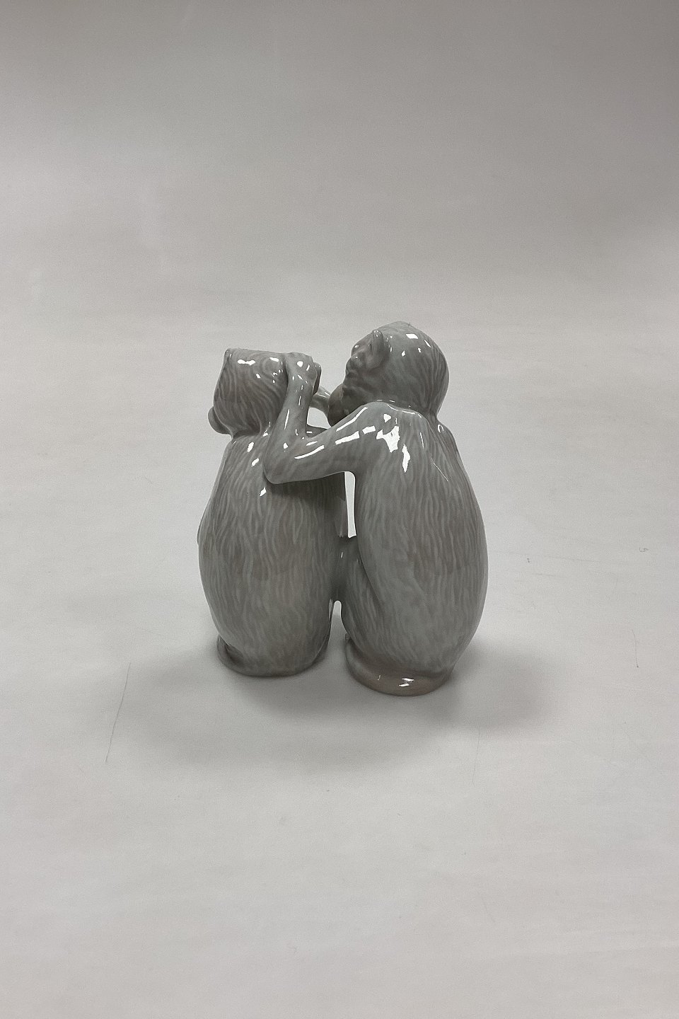 Bing and Grøndahl Figurine Monkey Pair No. 1667 or 1524. Designed by Ingeborg Plockross Irminger. The figurine is numbered with the figurine number of the right monkey. Color: gray-white.Measures 8.2 cm / 3.23 in. 1st Quality.