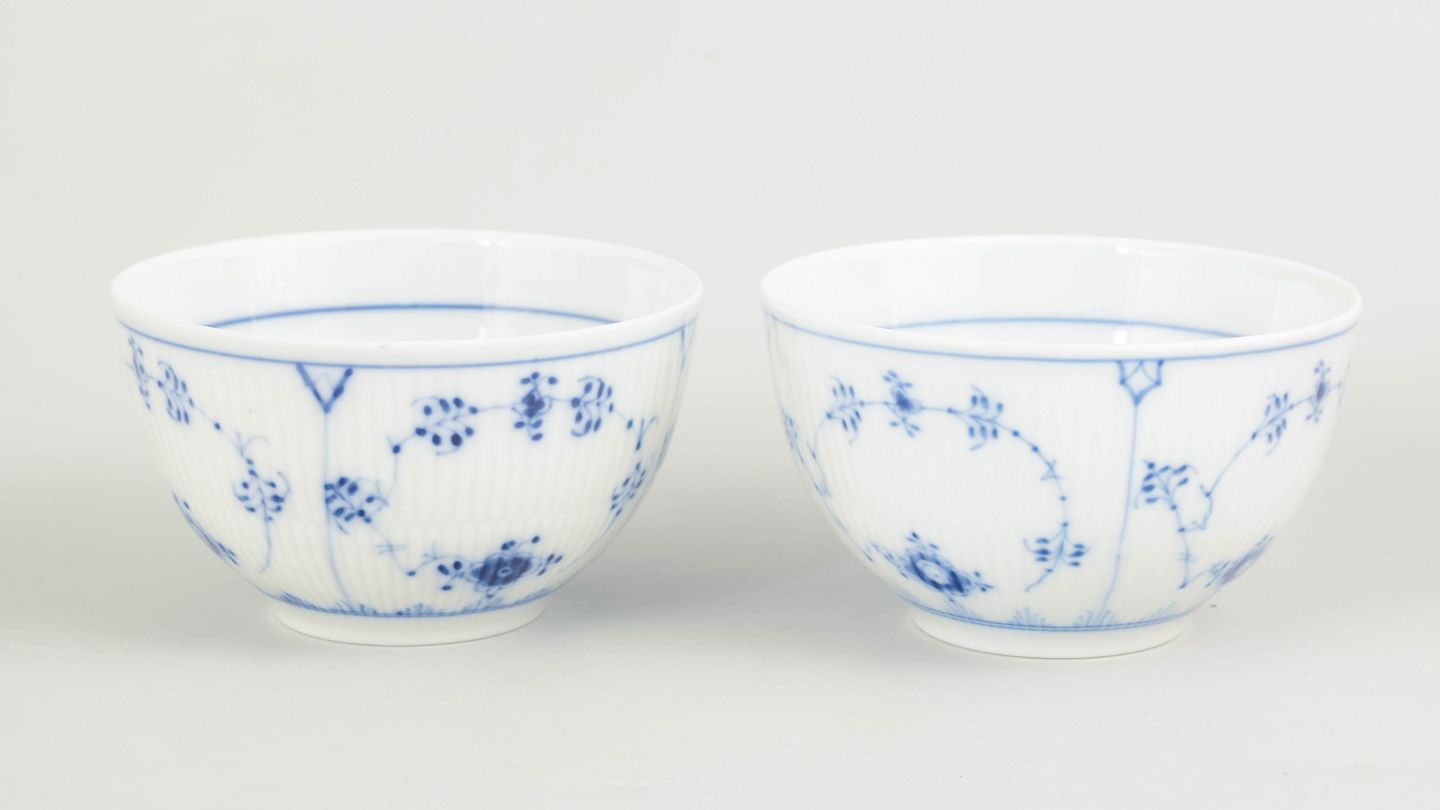Royal Copenhagen Blue Fluted Plain set of two bowls.Set of two bowls in hand-painted porcelain from the Blue Fluted Plain service with classic underglaze cobalt blue decoration and fluted surfaces. Model 1/209. H. 7 cm, D. 12 cm. First factory quality. Produced in the 1980s.