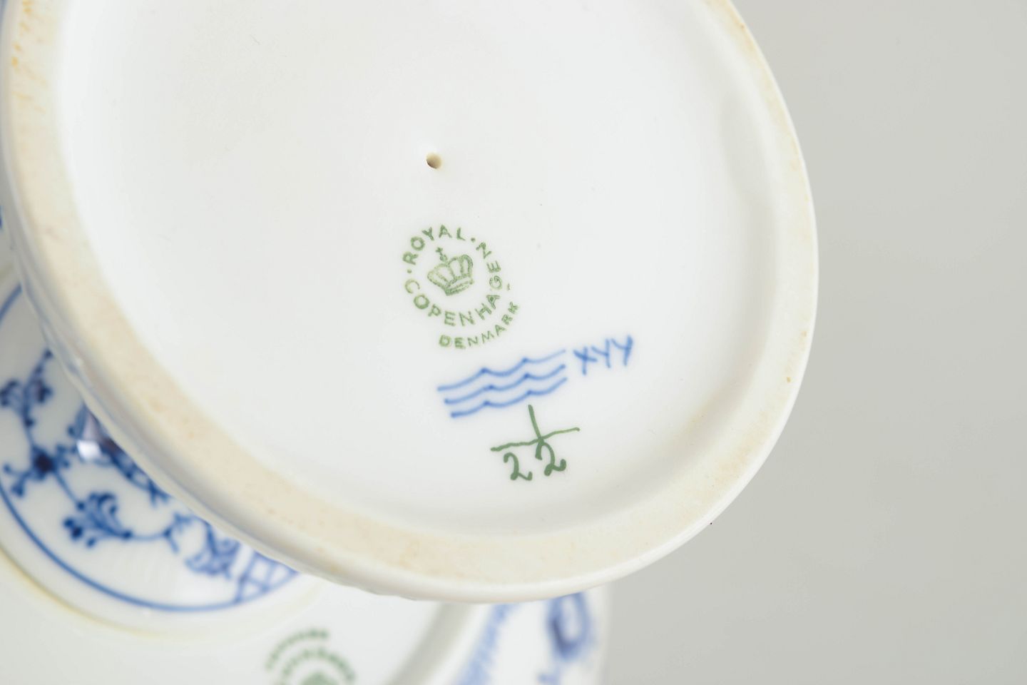 Compote in hand-painted porcelain from the Blue Fluted Plain service with classic underglaze cobalt blue decoration and fluted surfaces. Model 1/22. Cancelled with one incised line on the base.