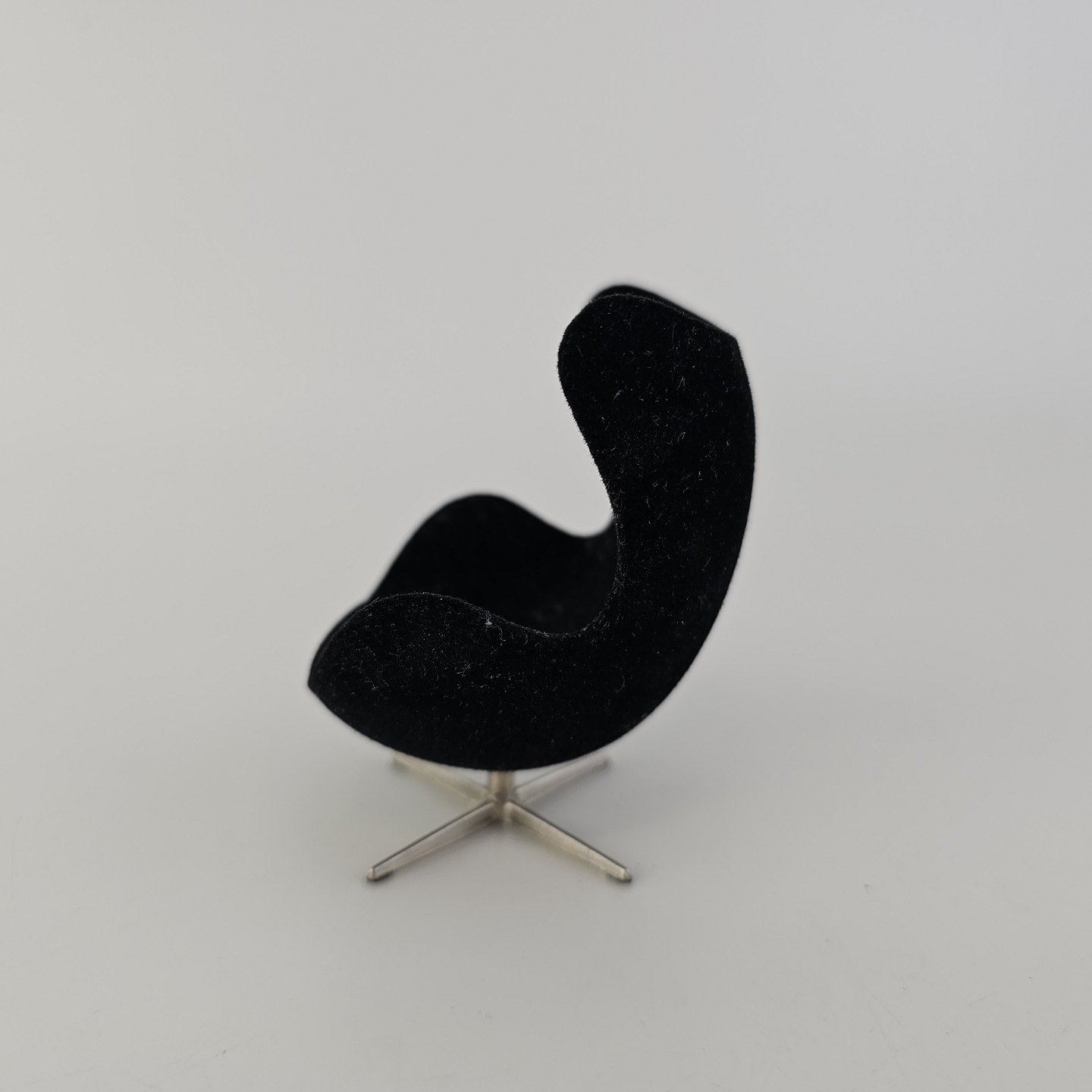 Miniature model af lænestolen Ægget polstret i sort stof