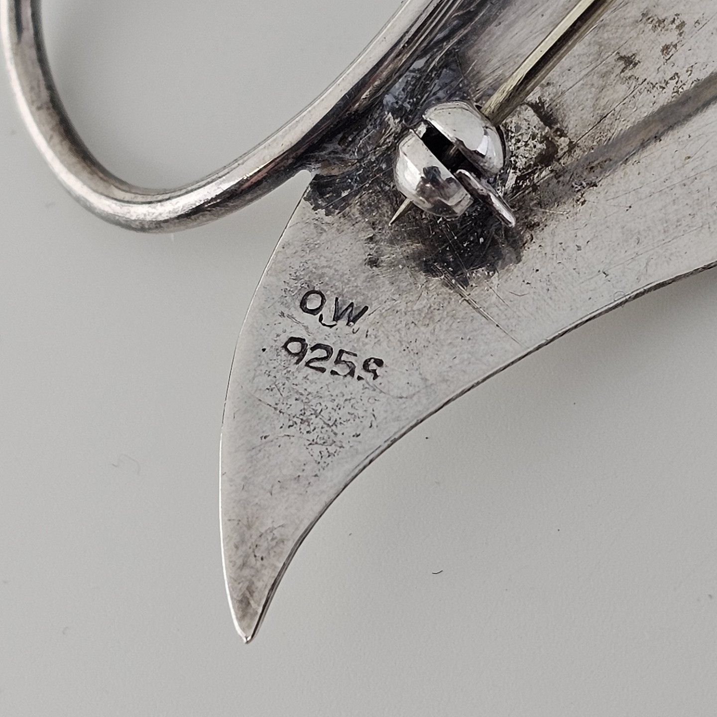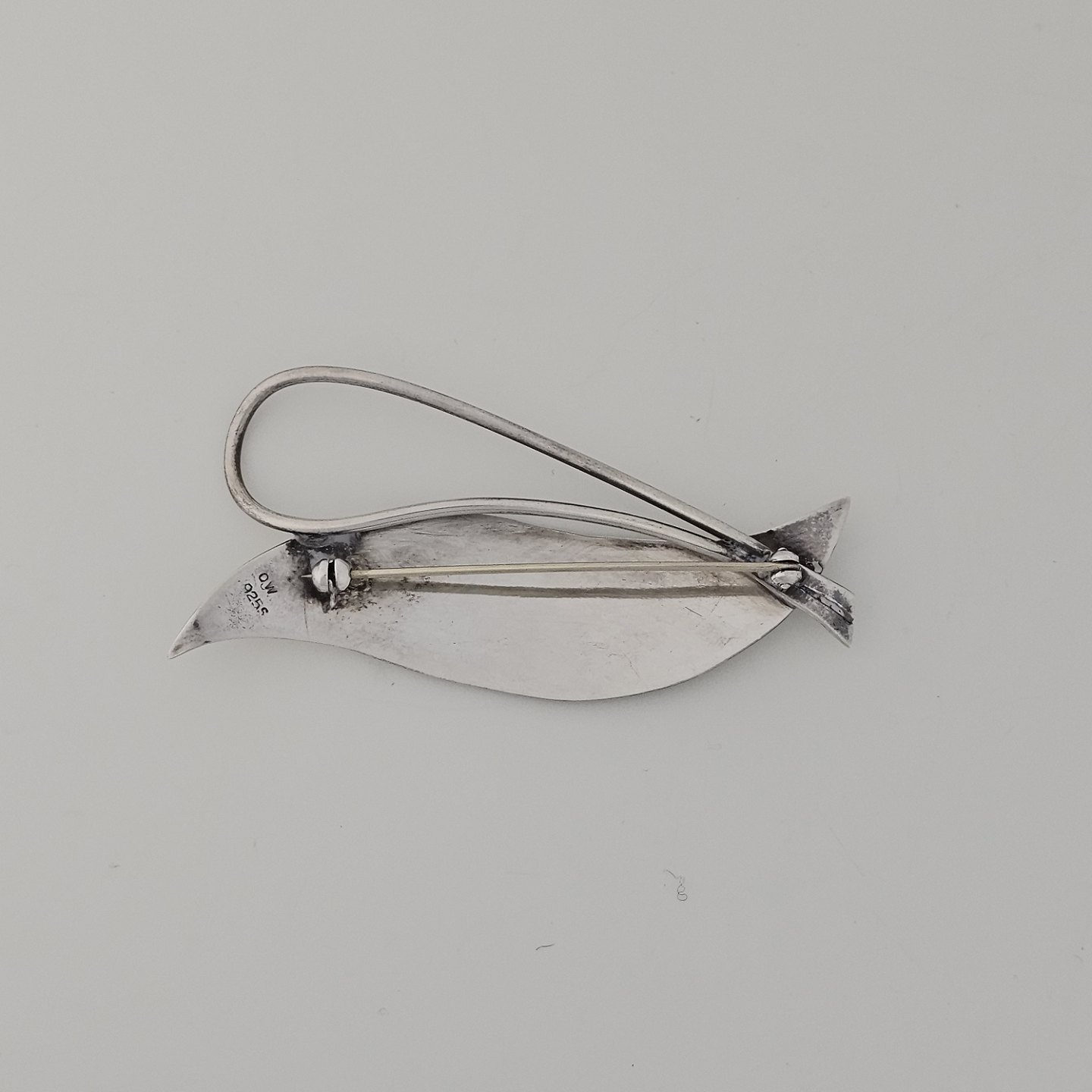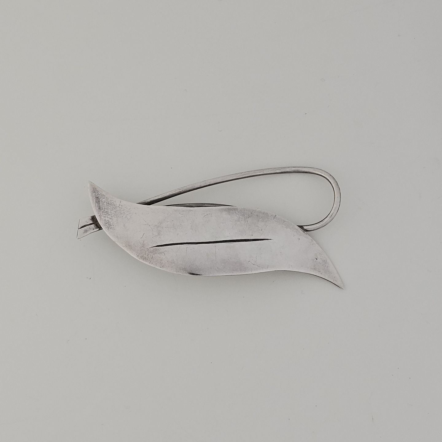 Broche i sterling sølv med motiv af et bladProducent Orla Wilkmann (1958-1983)