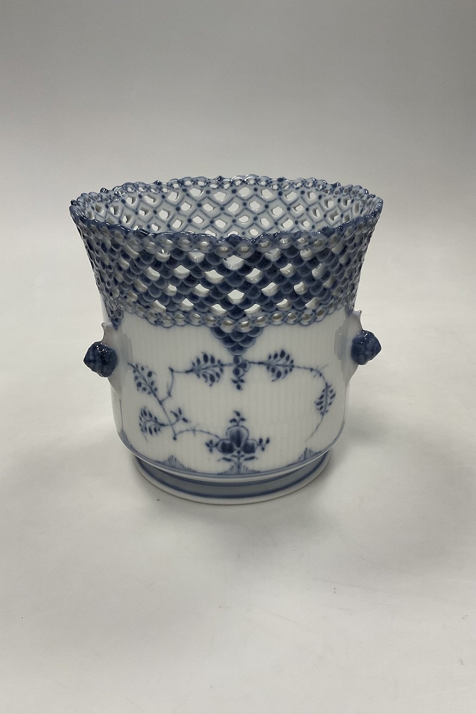 Antique Royal Copenhagen Blue Fluted Full Lace Wine cooler / Vase No 1047Measures 16,2cm høj og 16,5cm dia ( 6.38 inch x 6.50 inch )