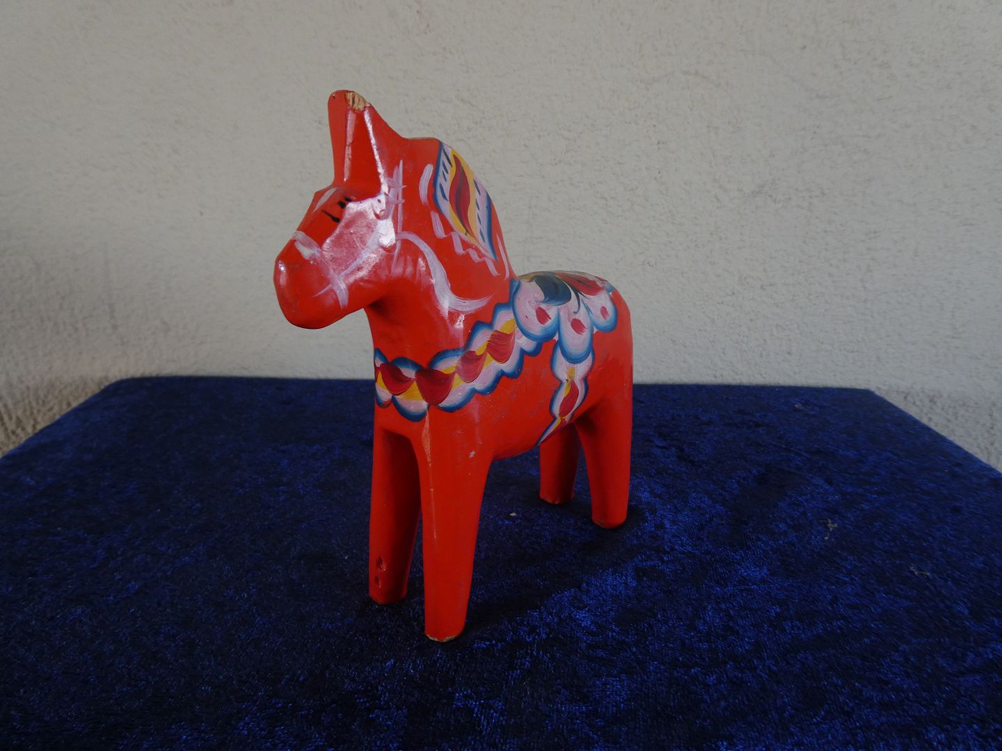 Dalecarlian horses of wood from Sweden.We have a large selection of Dala horses in different colour and sizes. All with normal usage wear.