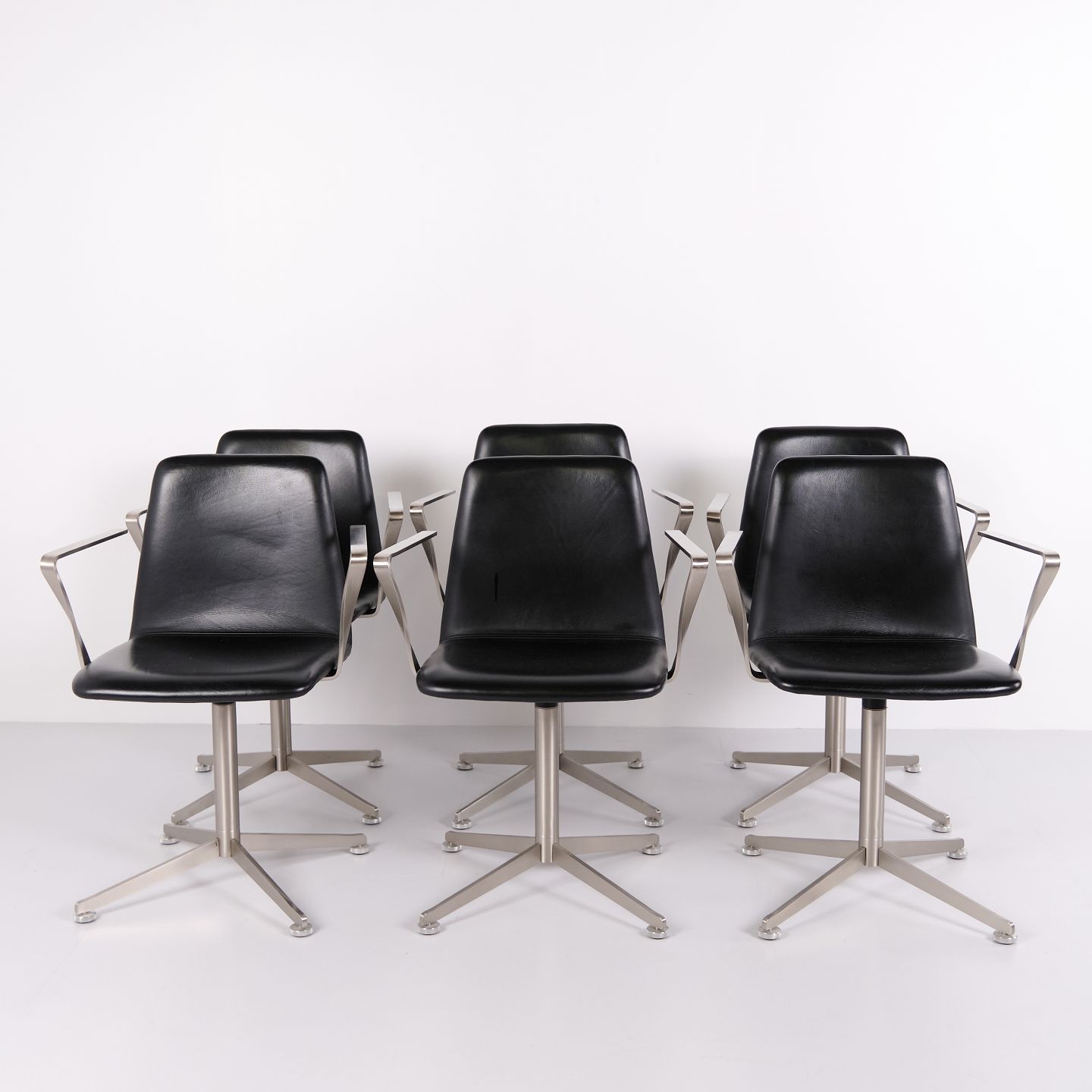 Set of 6 Paustian Spinal 44 conference chairs in black leather. Danish design with a modern and functional design language.— Origin: Denmark