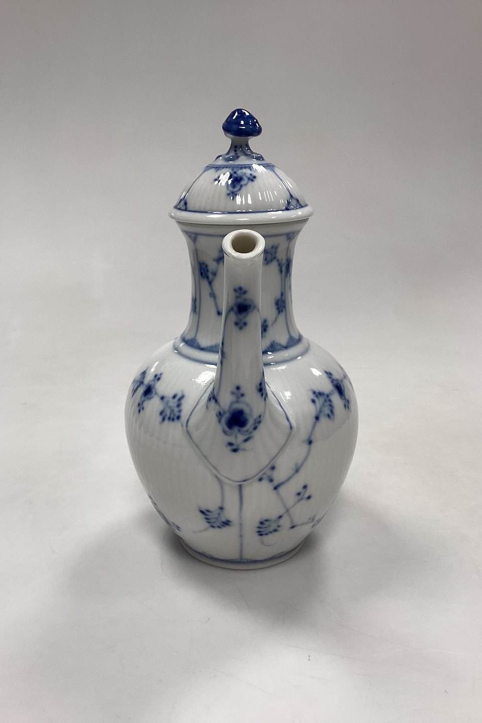 Royal Copenhagen Blue Fluted Plain Coffee Pot No. 47 or 125. Measures 23 cm / 9.05 in. 3rd QualityStock: 1