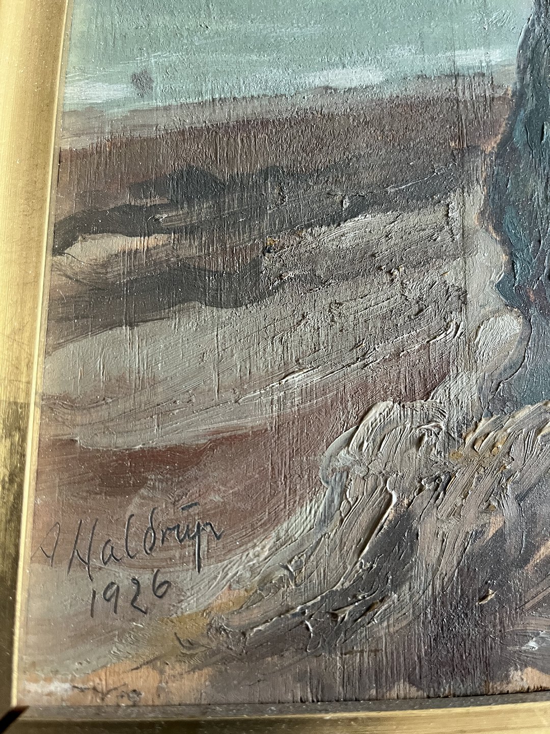 Maleri af Aksel Haldrup 1926 - Nøgent træ ved vandkant.