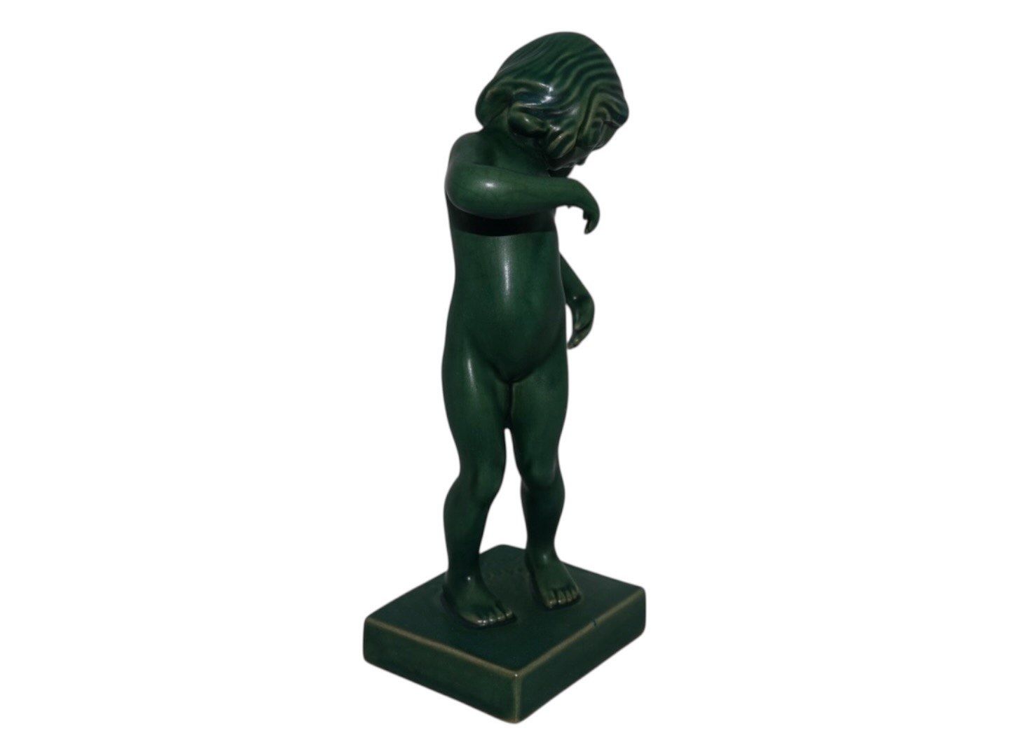 Green Ipsen art pottery figurine, girl called Venus Kalipygos by artist Kai Nielsen.
