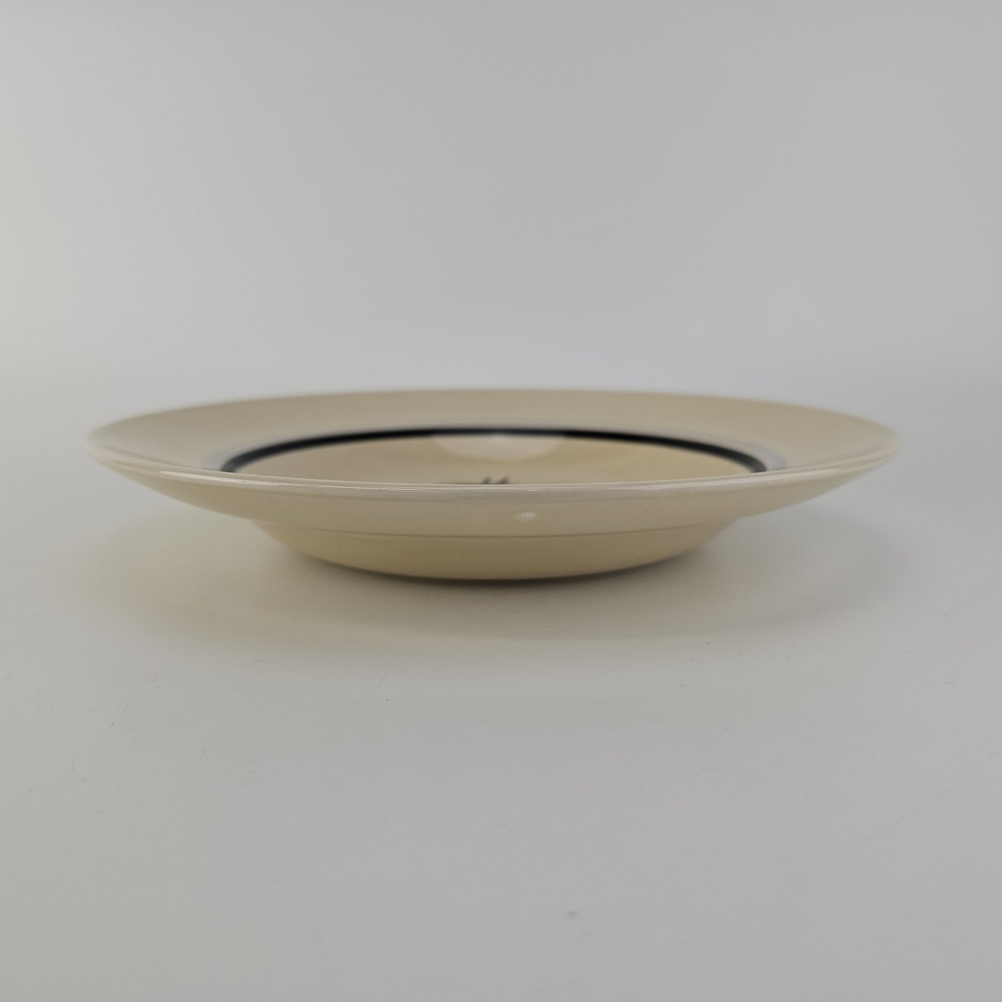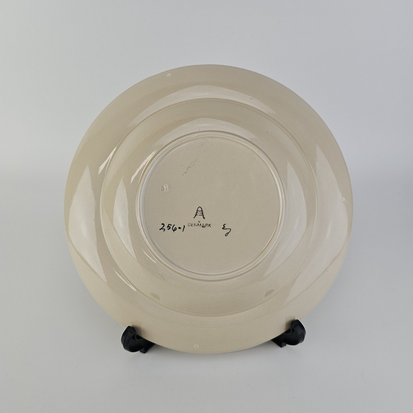 Dyb tallerken i fajance fra stellet Dragsholm fremstillet i perioden 1934-1965. Formgiver Thorkild Olsen