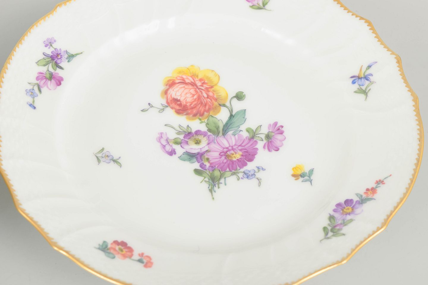 Royal Copenhagen was founded in 1775 in Copenhagen under the patronage of Queen Dowager Juliane Marie. The manufactory is renowned for its hand-painted porcelain and high artistic and craftsmanship standards. The Saxon Flower decoration is inspired by 18th-century European porcelain traditions and was produced throughout much of the 19th and 20th centuries, including during the 1920s.