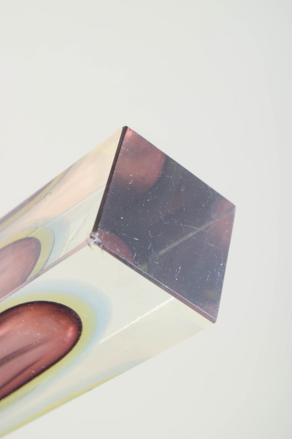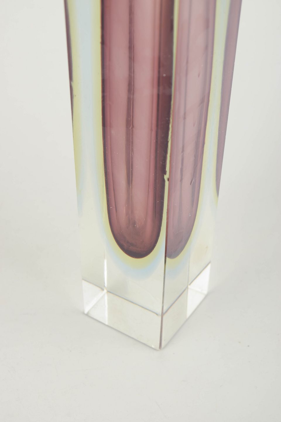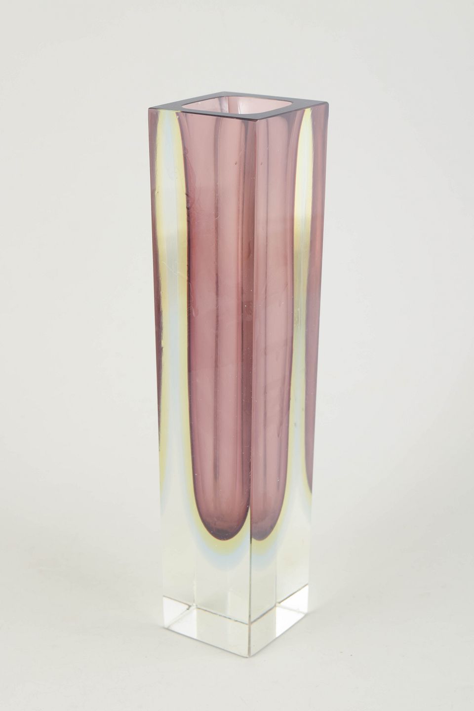 Murano has been a centre of Italian glassmaking since the Middle Ages. During the twentieth century, the island’s glasshouses gained international recognition for technical innovation and experimental forms, particularly in the 1950s and 60s, when encased colours and sculptural silhouettes became characteristic of the period.