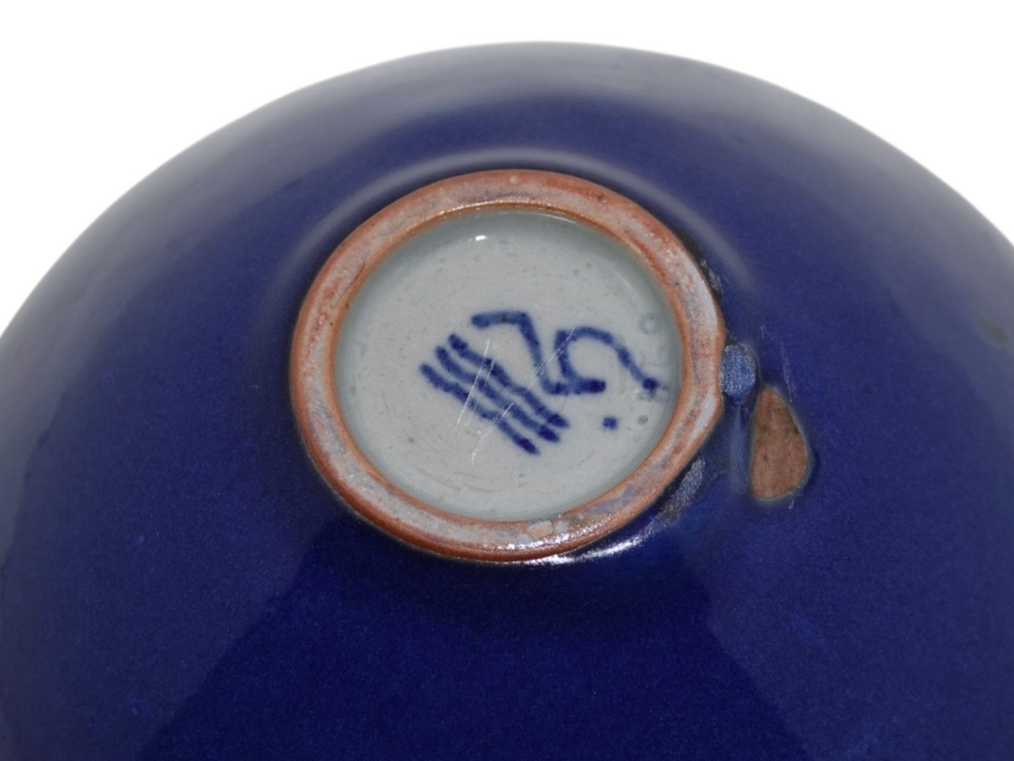 Royal Copenhagen art pottery, unique lavender blue glaze bowl by Nils Thorsson.Factory third.