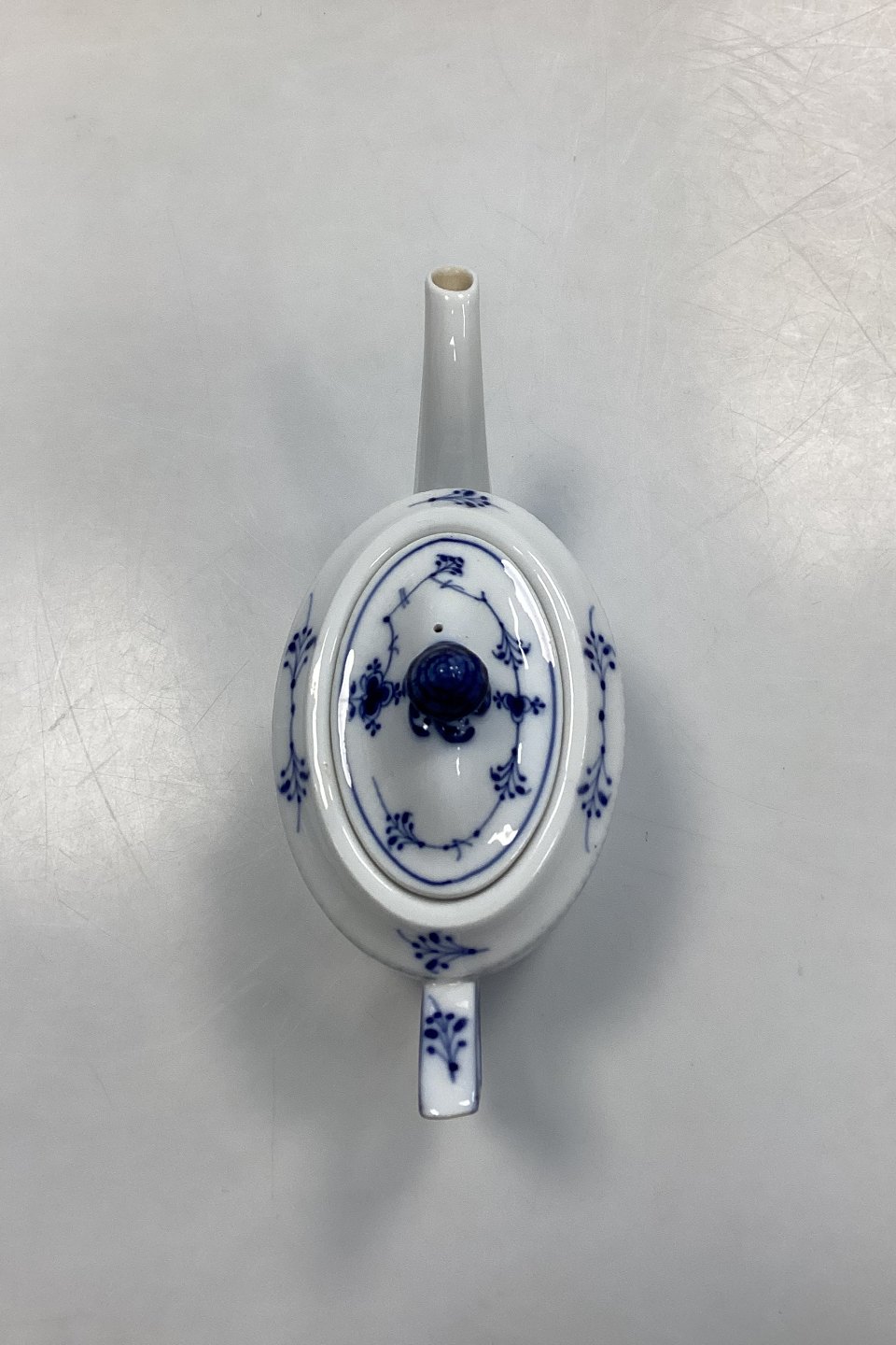 Royal Copenhagen Blue Fluted Fluted Oval Teapot No. 253. Measures 9.5 cm / 3.74 in. in height without lid. Measures 12.5 cm x 9 cm / 4.92 in. x 3.54 in. without handle and spout.1st Quality in fine whole condition.