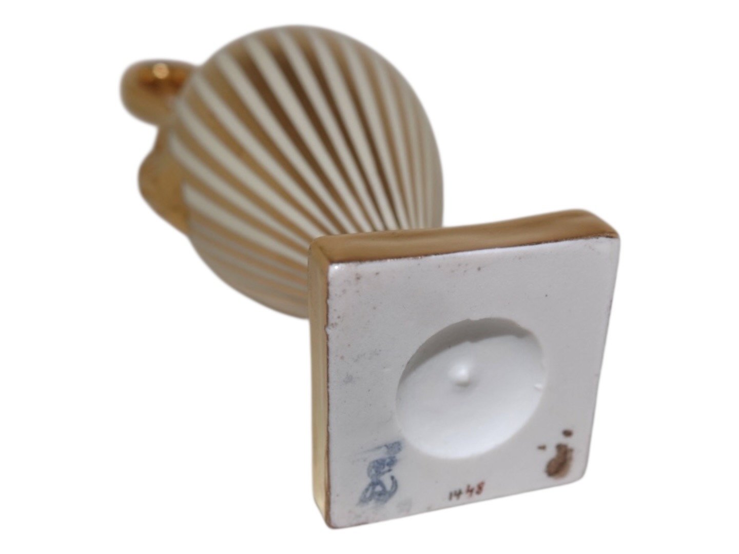 Most likely Dresden porcelain, small vase with gold decoration.Decoration number 1448.