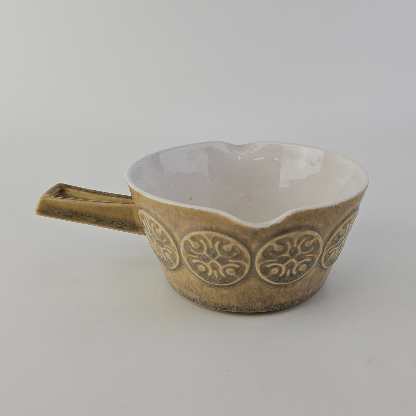 Skål med håndtag i stentøj fra stellet BautaFormgiver Henning Jensen i 1957-1958