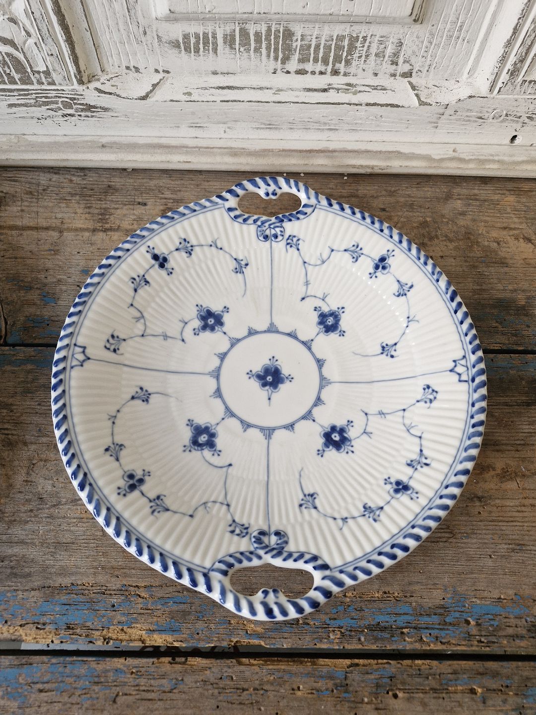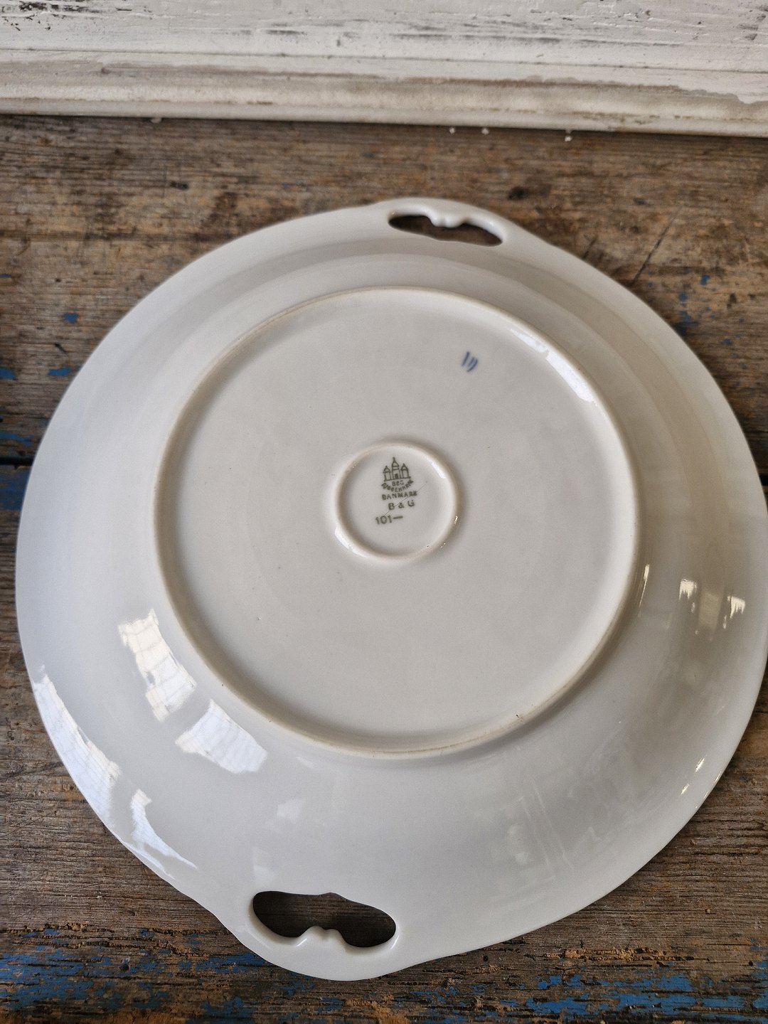 B&G Blue fluted dish with handleNo. 101, Factory second