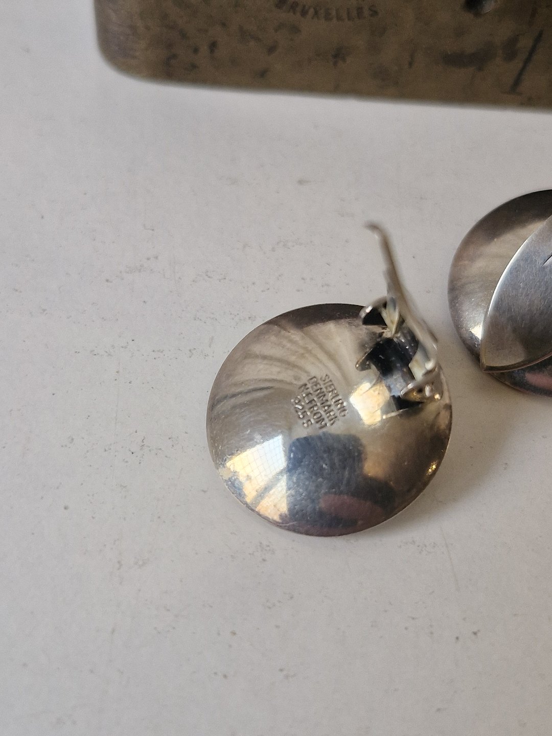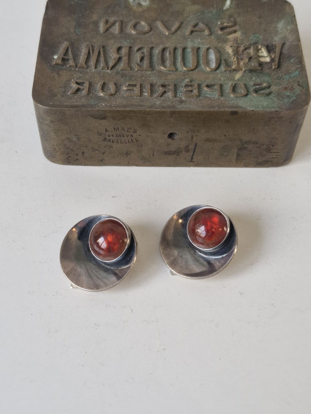 N.E.From vintage ear clip in sterling silver and amberStamped: N.E.From - Sterling - Denmark