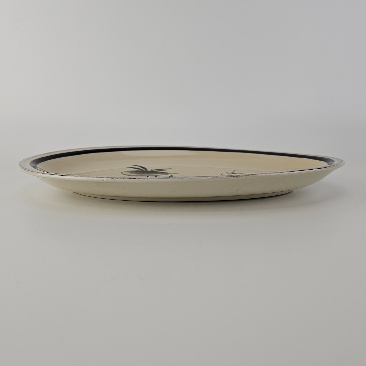 Ovalt fad i fajance fra stellet Dragsholm fremstillet i perioden 1934-1965. Formgiver Thorkild Olsen