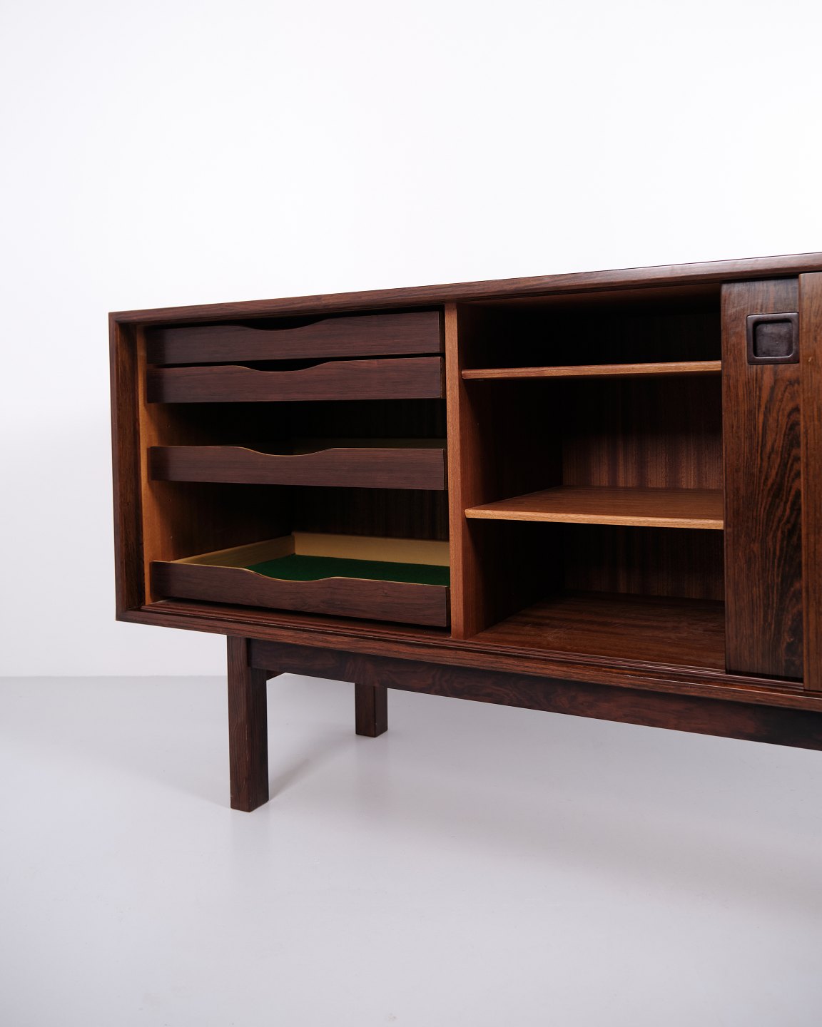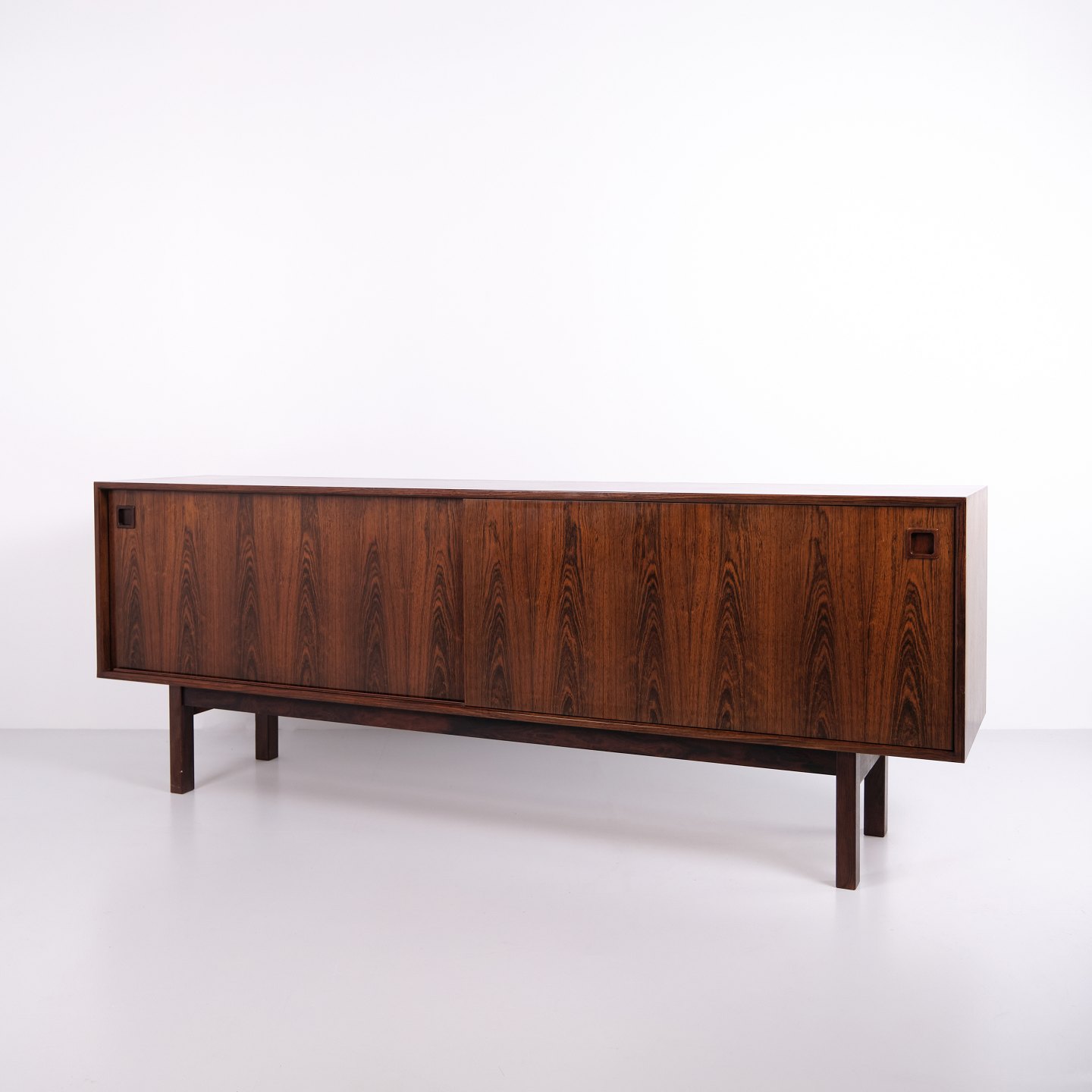 Sideboard, model 21, designed by Gunni Omann and produced by Omann Jun Møbelfabrik in Denmark during the 1960s. The piece is crafted in rosewood and represents a classic example of Danish furniture design, characterized by clean lines, functionality and refined cabinetmaking details.