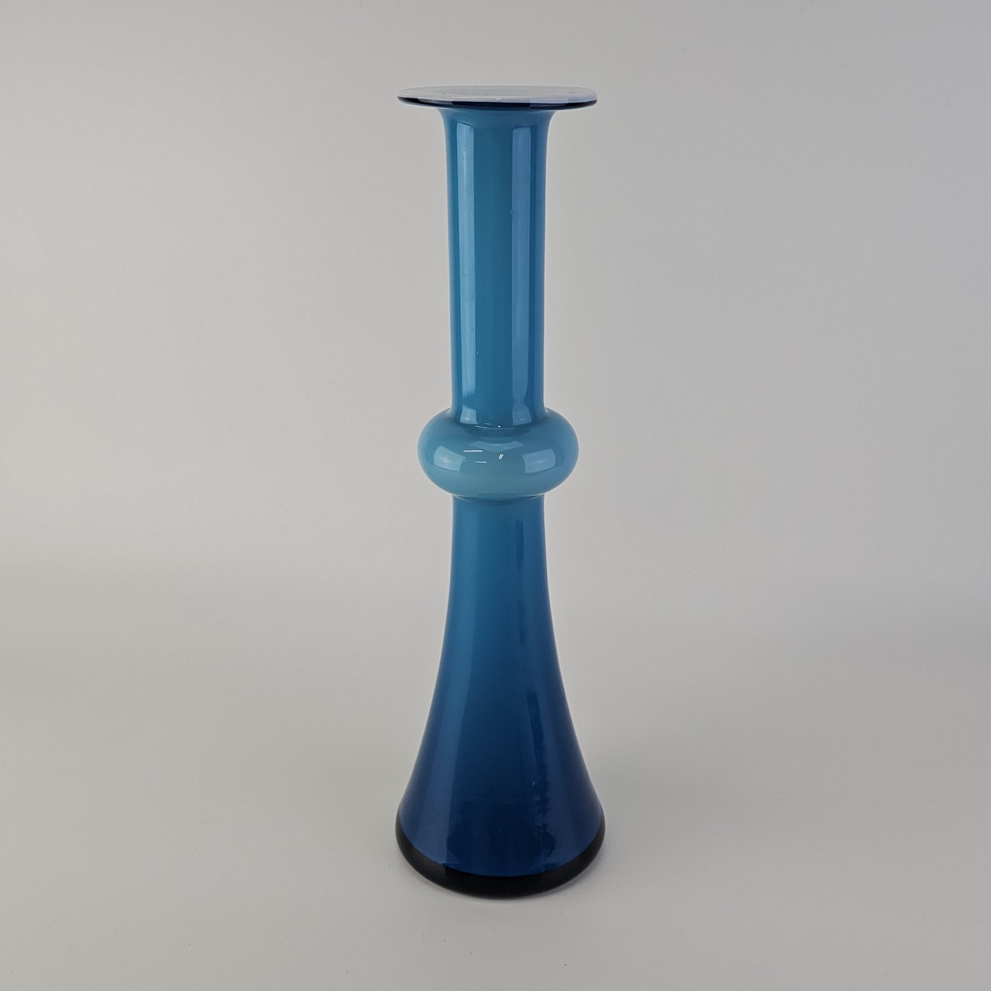Vase i opal hvid mundblæst glas med blåt overfangFormgiver Christer Holmgren