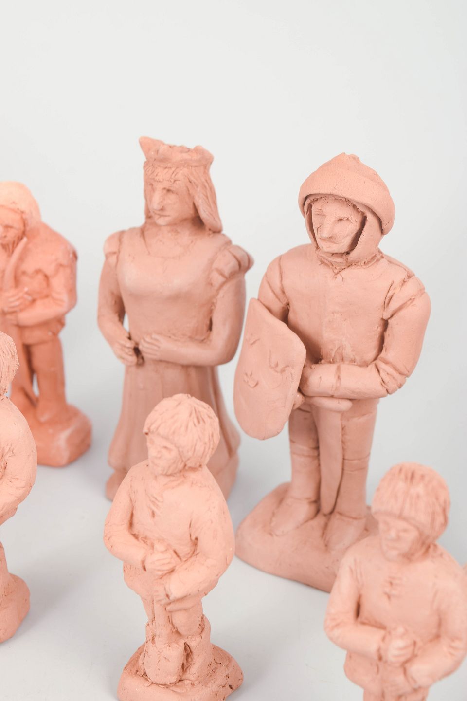 Nils-Erik Zetterström, chess set with figures.Unique ceramic chess set consisting of a complete set of thirty-two hand-modelled figures executed in unglazed clay. The pieces are designed as stylised human figures and sculptural forms, each with individual character and detailing. Several of the pieces are signed. The set presents an artistic interpretation of a chess game with a strong sculptural character. Created in 1959.