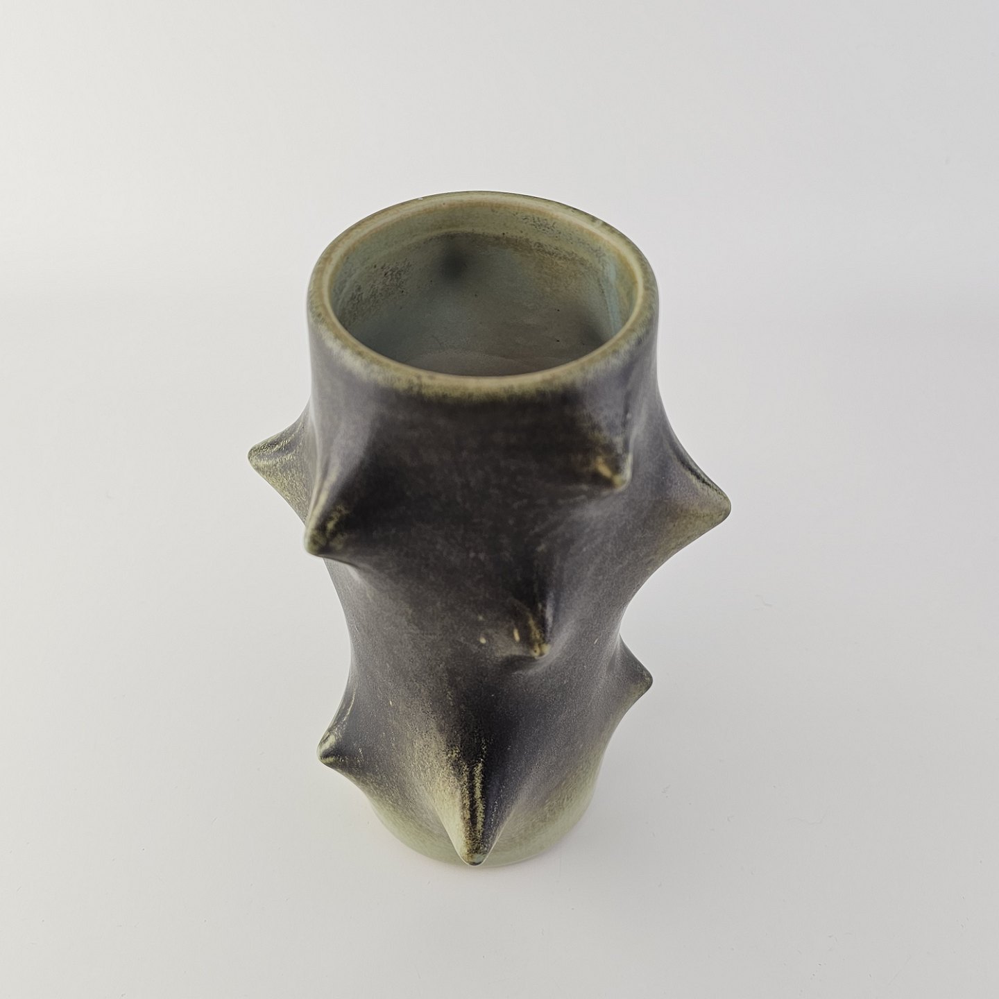 Vase i glaseret stentøj med motiv af en rosenthornFormgiver Knud Basse (1916-1991)